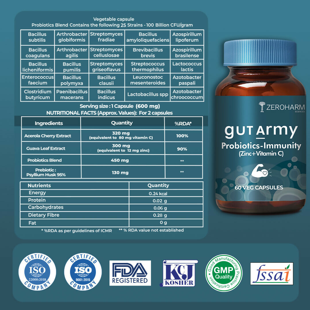 Zeroharm Sciences Gut Army Probiotics-Immunity Vegetable Capsule