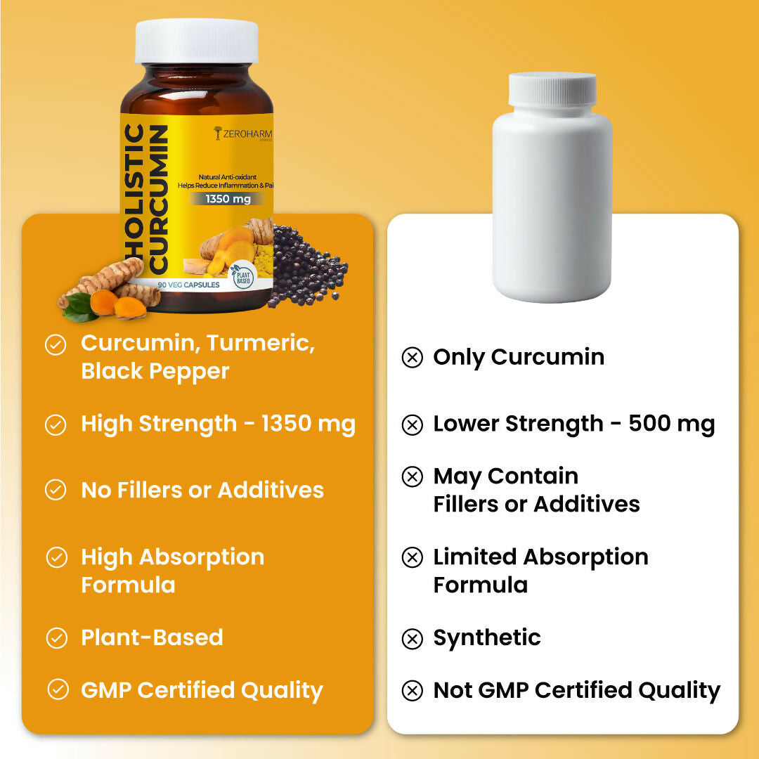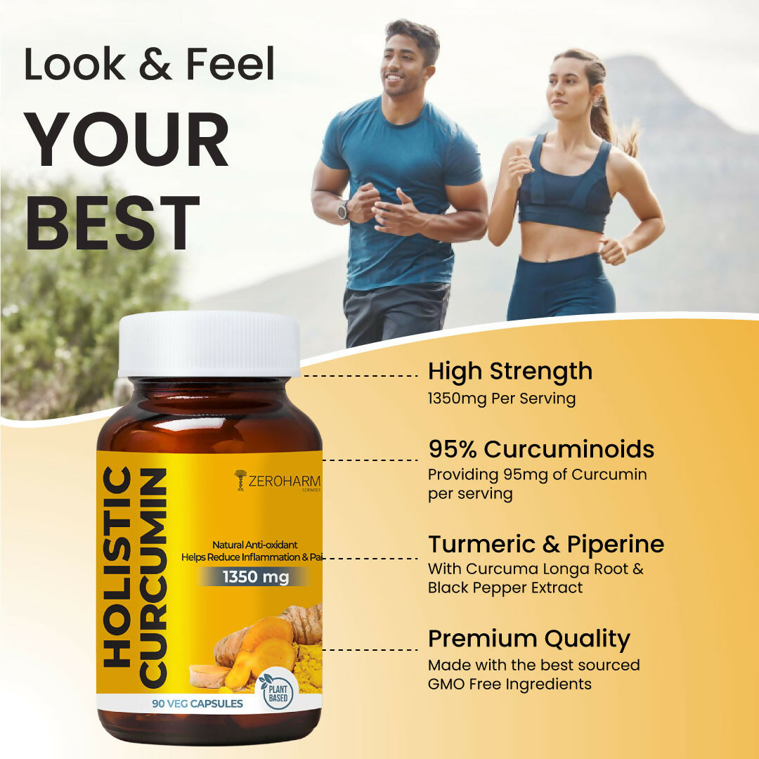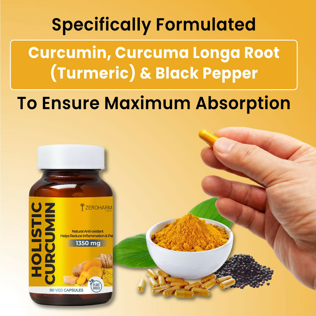 Zeroharm Sciences Holistic Curcumin 1350 mg Veg Capsules helps in offering holistic benefits and contains anti-inflammatory and antioxidant properties. It helps in faster wound healing and boosts immunity in the body.Key Ingredients:
