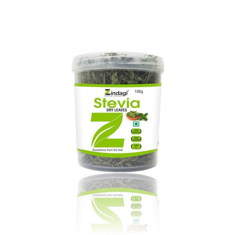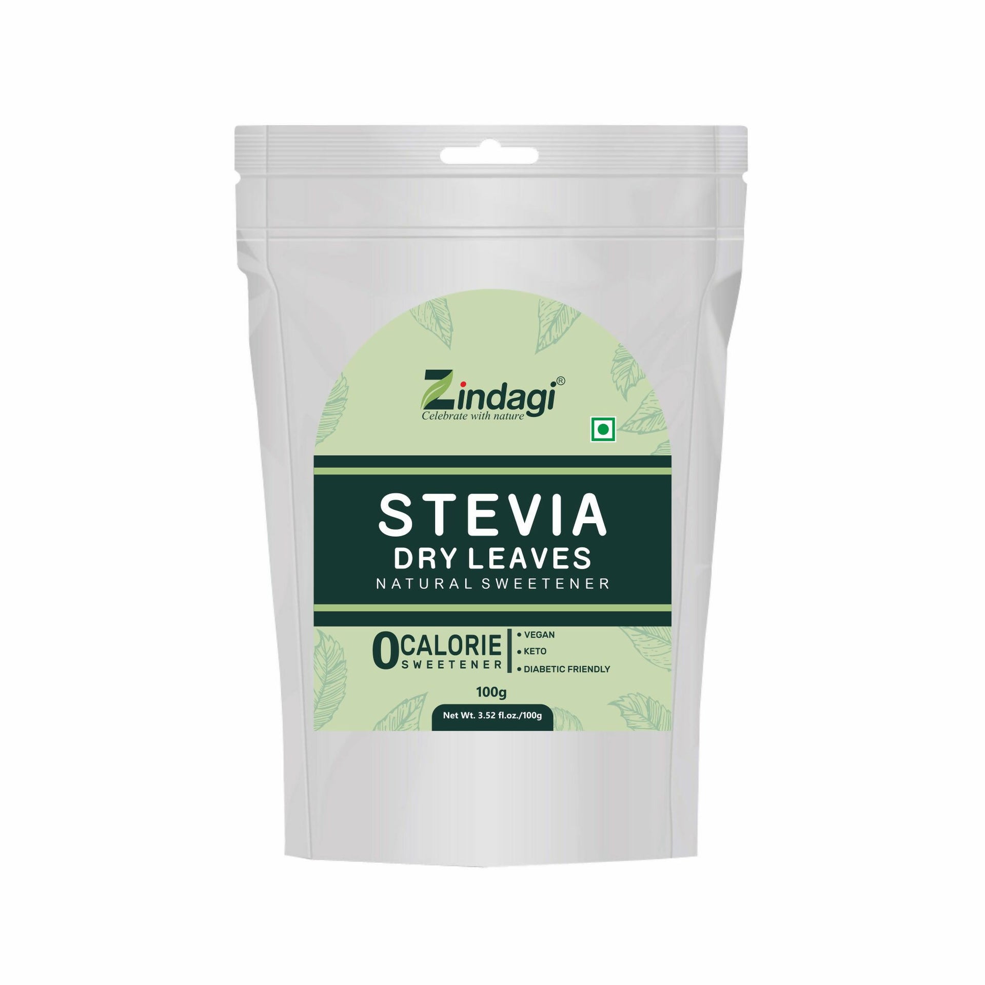 Zindagi Stevia Dry Leaves are sun-dried, 10-15 times sweeter than regular cane sugar. It contains zero calories, no fats, and no carbohydrates, with numerous health benefits. Stevia leaves are safe for diabetic patients and a natural remedy to reduce weight.