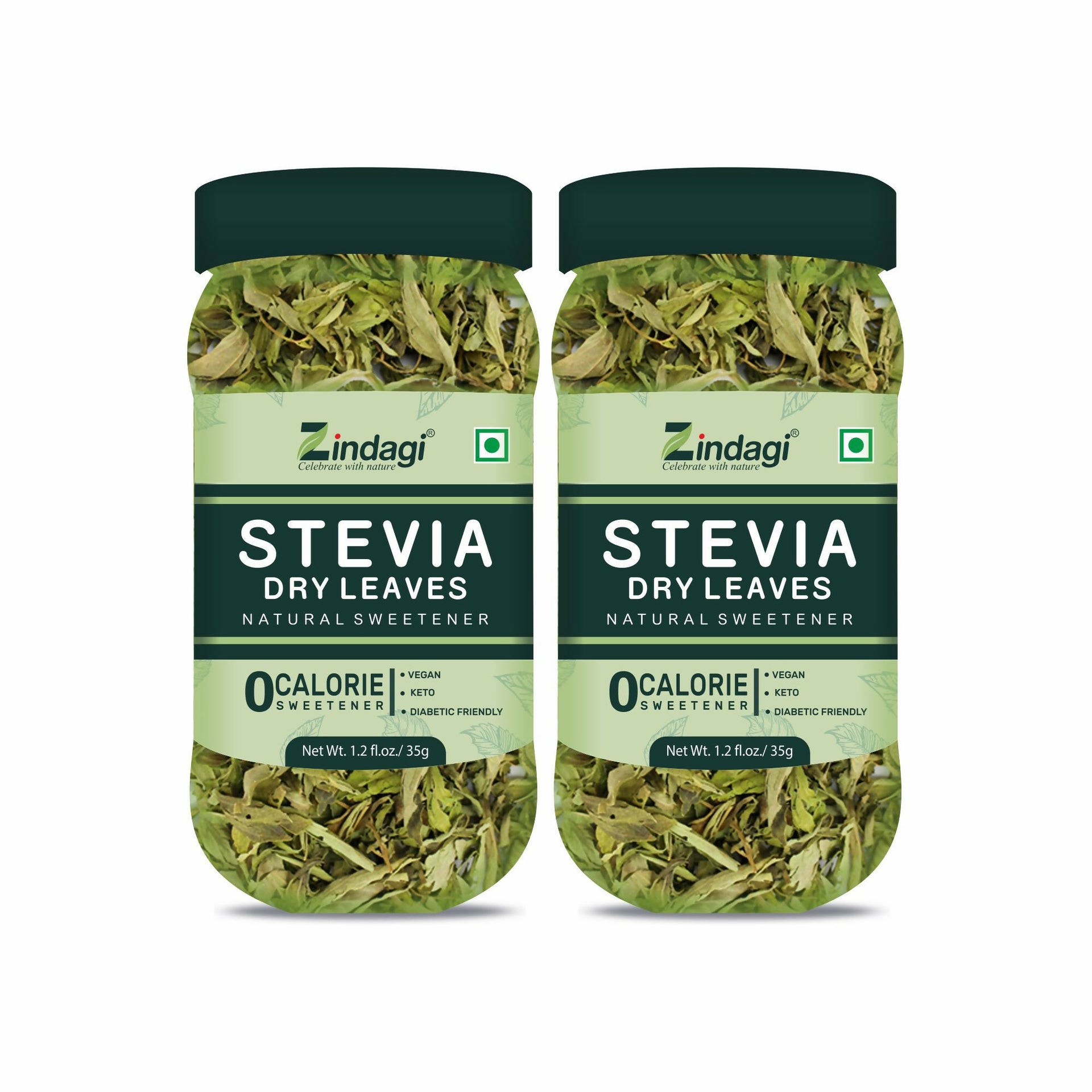 Zindagi Stevia Dry Leaves - Pure Sugarfree Stevia Leaf (Pack of 2) Each 35gm