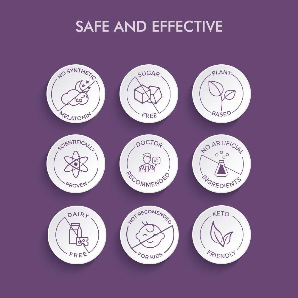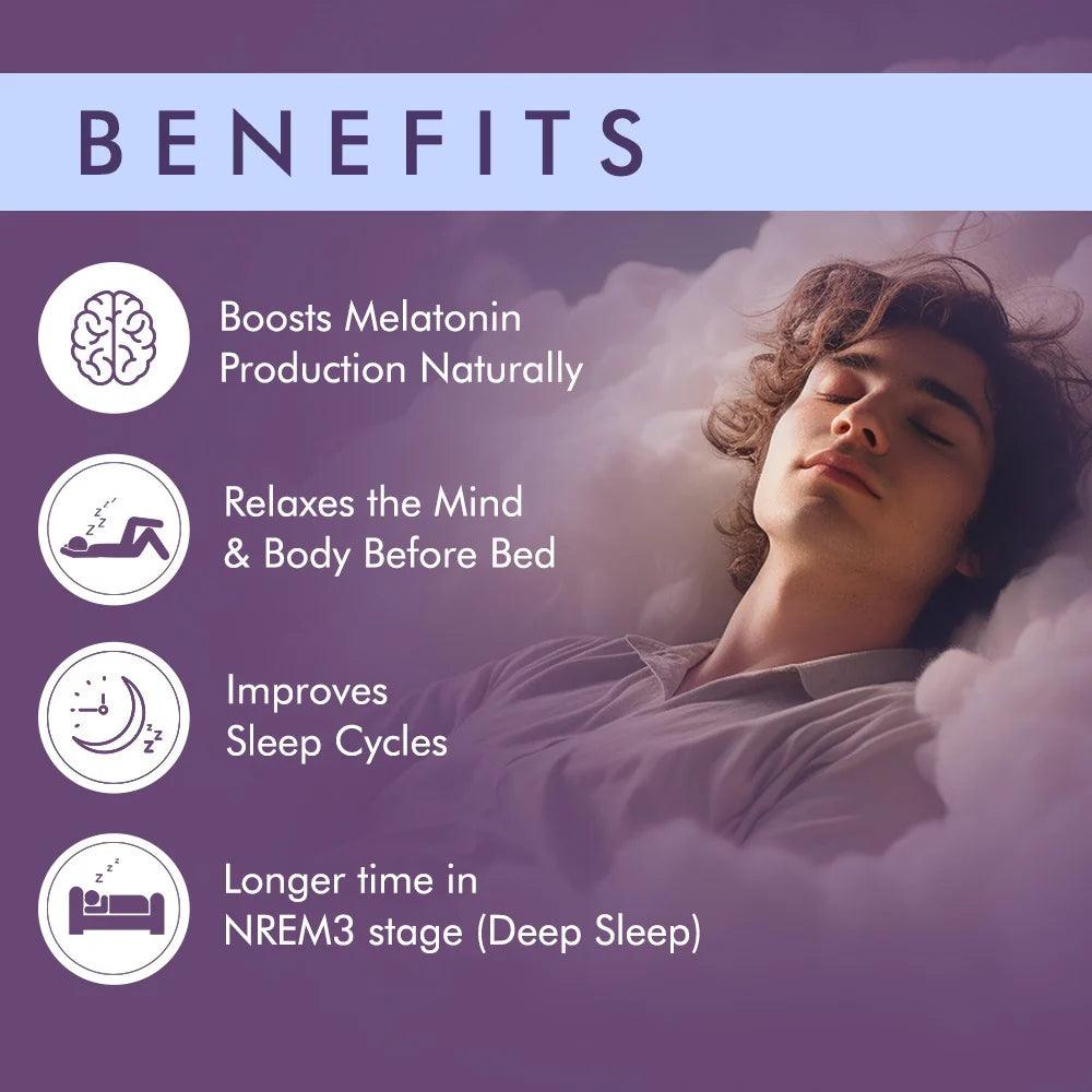 Improves Quality of Sleep : The formulation works to keep you longer in your deep sleep phase (NREM 3). This ensures that your body is able to recover, restore and repair itself leaving you fresh and renewed for the new day, with ZERO hangover like feeling you get when you have a melatonin supplement.