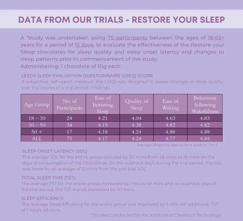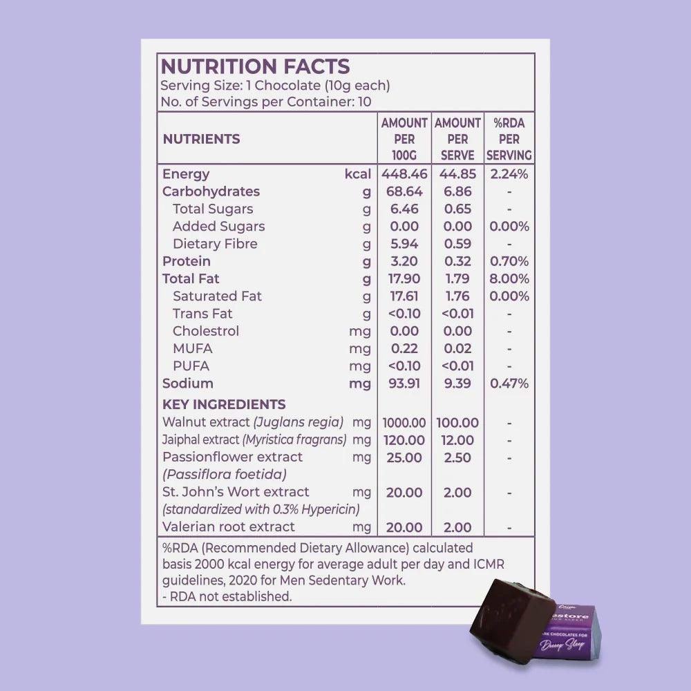 Non Habit Forming: These dark chocolates help and aid your body to boost its own melatonin, creating no dependency or addictions. Enjoy them as and when needed for quality sleep and let them work their magic!