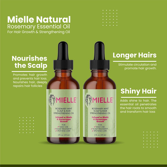 Mielle Natural Rosemary Hair Oil – Promotes Hair Growth & Reduces Hair Fall | 2 Pack 59ml