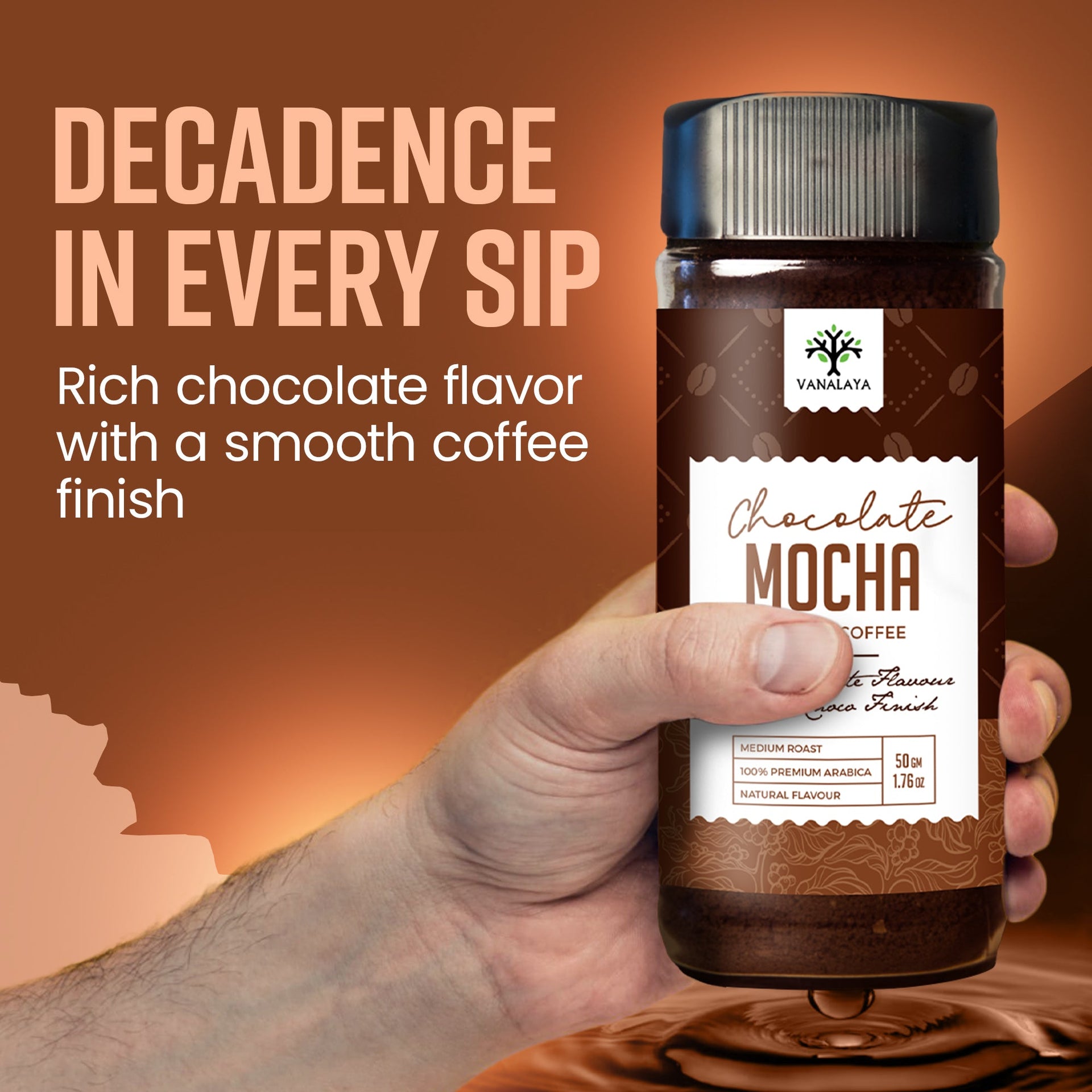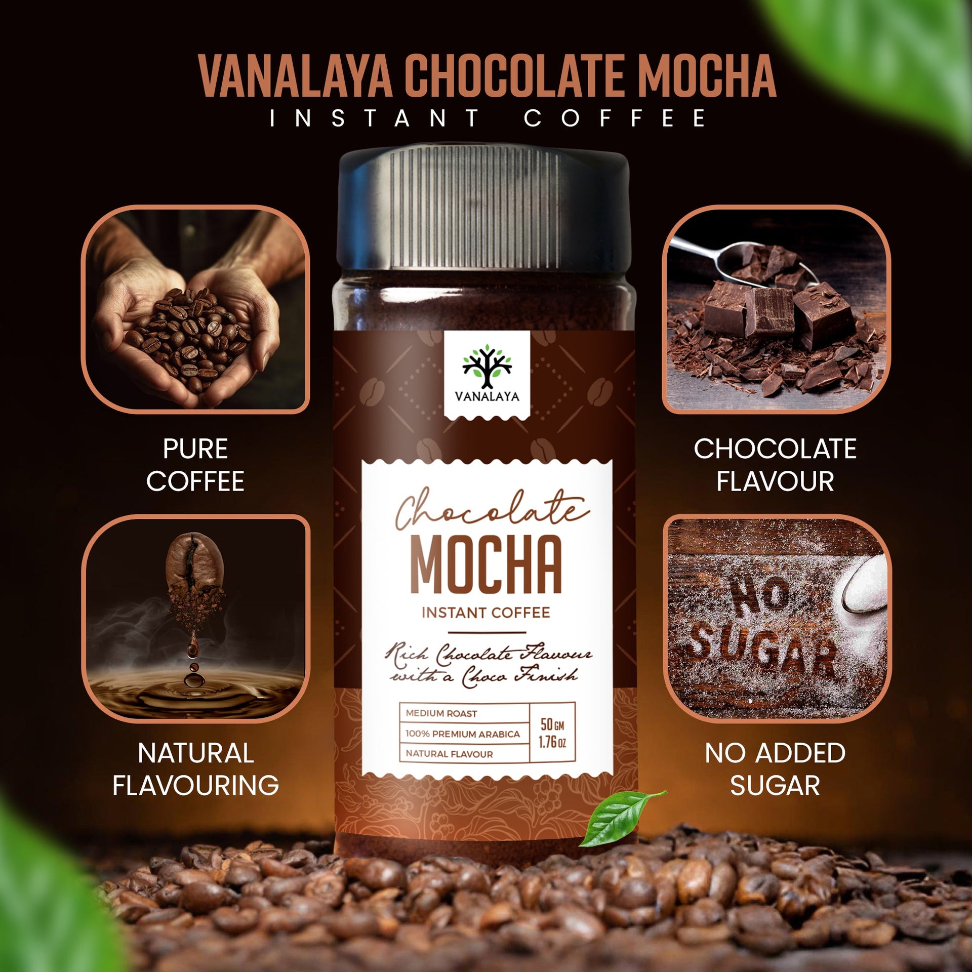 - Vanalaya Chocolate Mocha Instant Coffee | 100% Premium Arabica | Natural Chocolate Flavour | Medium Roast