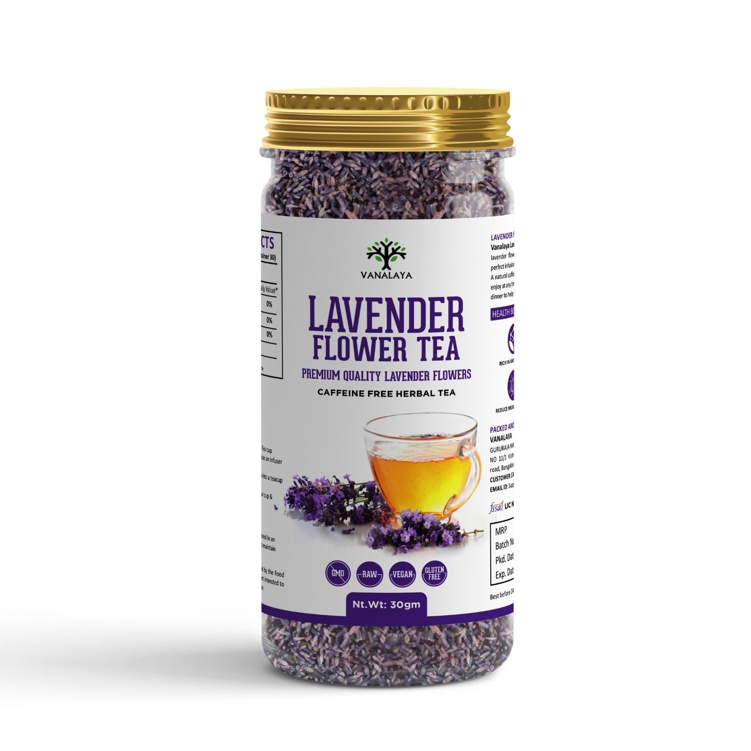 Vanalaya Organic Lavender Flower Tea is made from the fresh lavender flower known as Lavandula angustifolia. The perfect infusion to restore calm at any time of day or night. A natural caffeine free drink made with finest Lavender to enjoy at any time of the day. Especially recommended after dinner to help you relax before bedtime. Our dry lavender is 100% natural and organic. Lavender flowers can be crushed and steeped in hot water to create a tea that can be ingested. The flower should step in the hot water until it cools and then drink the tea. The aroma helps to relax the sleepless person, and help to induce sleep. Because of its sedative properties, it will be truly beneficial for everyone who has a sleeping disorder. Lavender tea offers a delicate flavour and aromatic fragrance that boasts extensive health benefits. Unearth the beauty of this floral plant and find out how drinking a cup of lavender can boost your health.