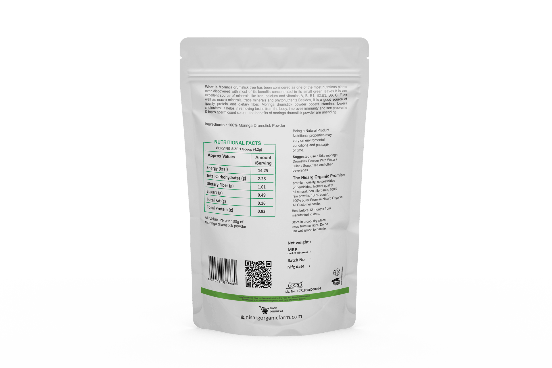 Farhan Q.      I've experienced better and more regular digestion since incorporating the drumstick powder. It feels like my gut health is finally back on track. I appreciate that Nisargs powder is pure and organic, ensuring maximum efficacy.