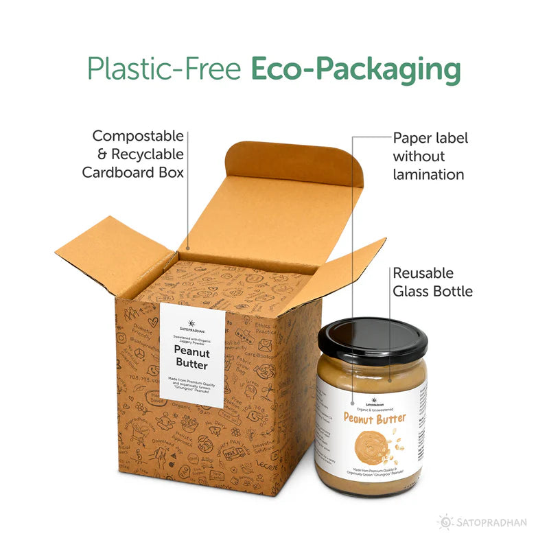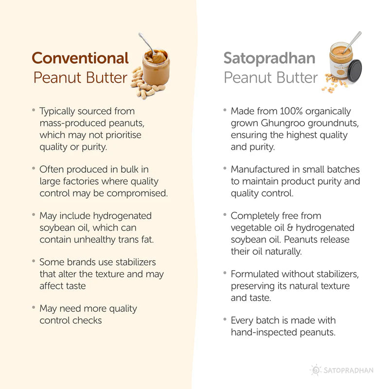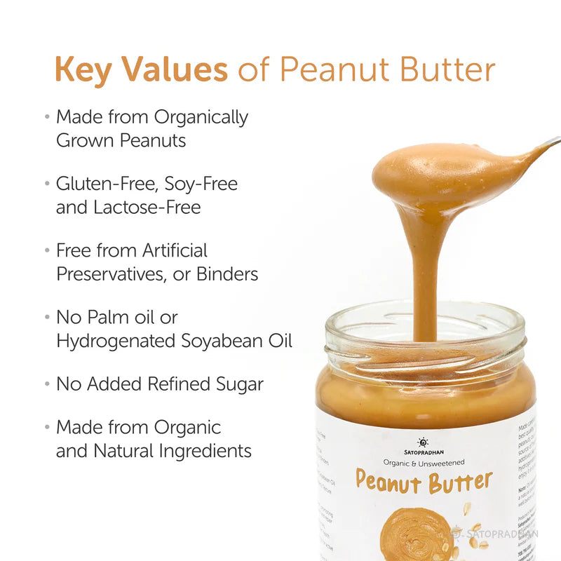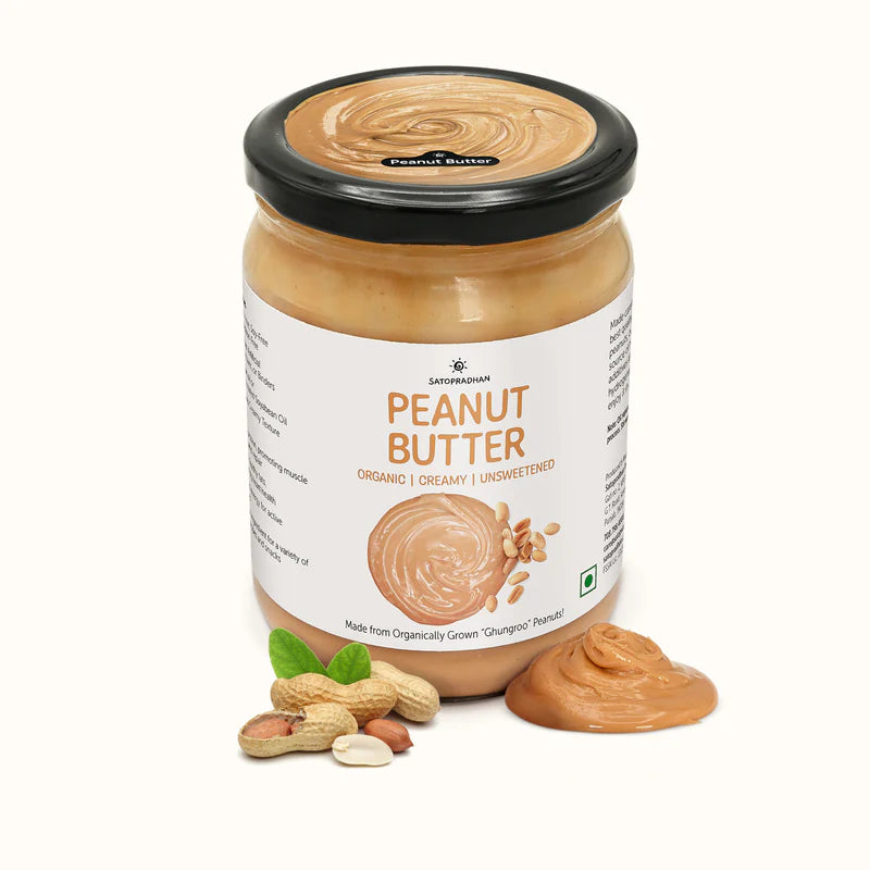 - Satopradhan Unsweetened Peanut Butter 500g - Creamy - All Natural, Gluten-Free & Vegan - No Hydrogenated Soybean Oil or Refined Sugar - Unsalted Peanut Butter