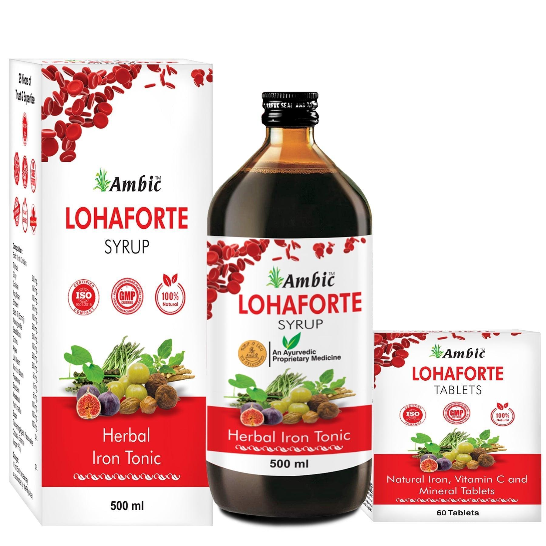 Ambic Lohaforte Syrup - Herbal Iron Tonic (500ml Each)
