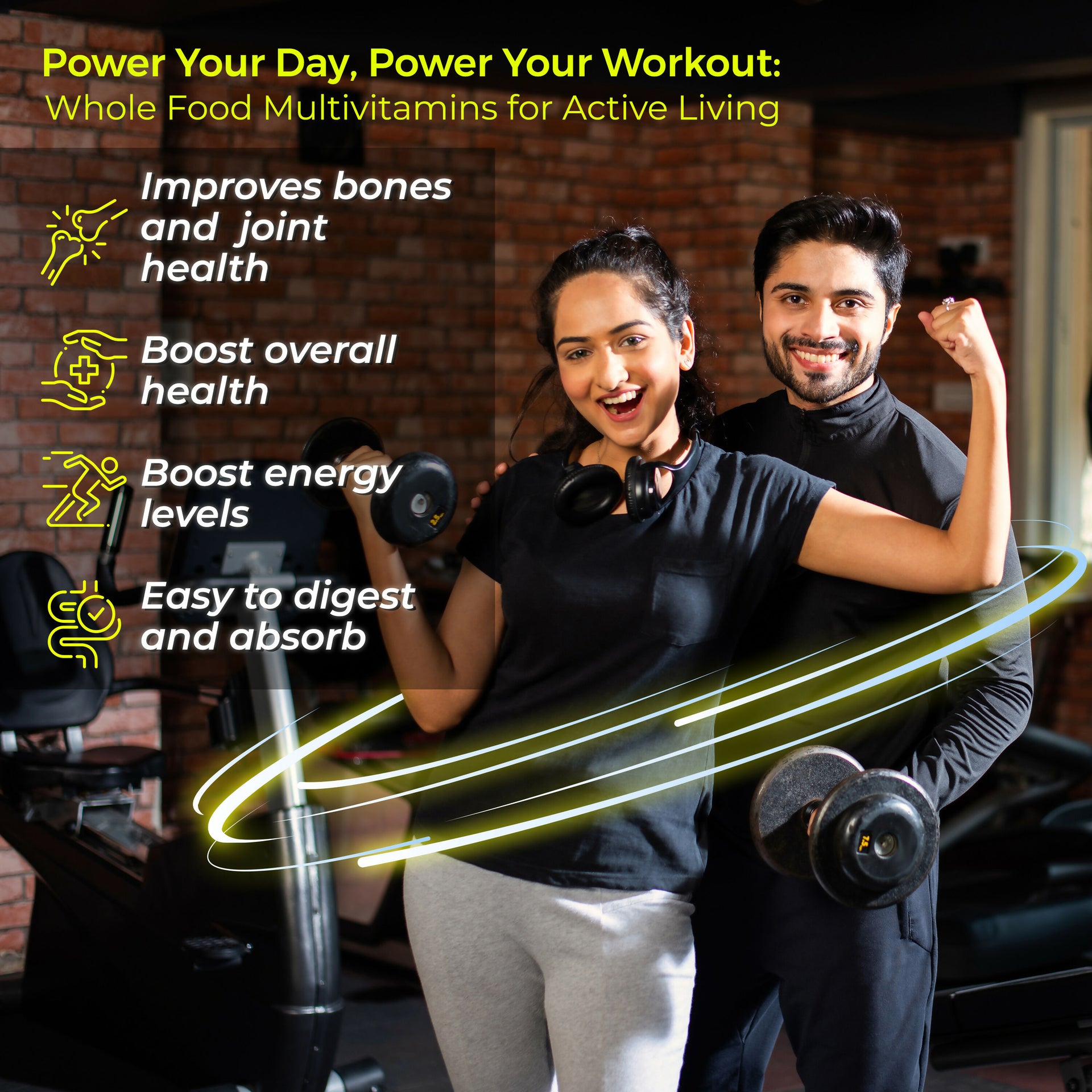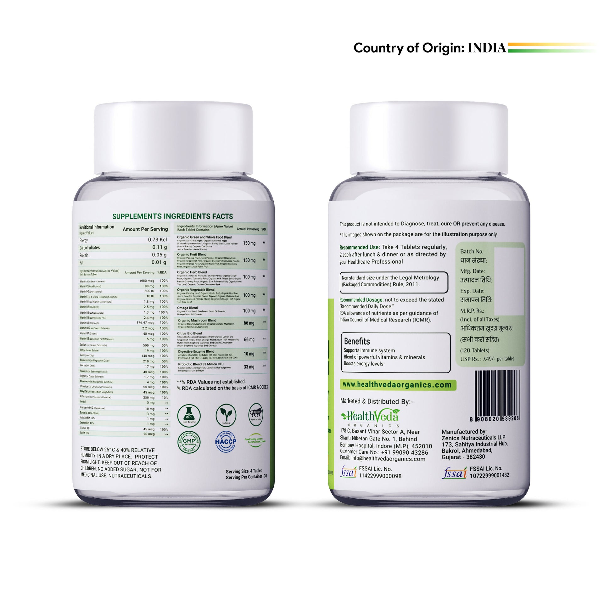 Health Veda Organics Whole Food Multivitamin Tablet - Daily consumption of health Veda organics whole food multivitamin tablets can keep you active and support you through your everyday fitness routines. The blend of essential vitamins can make this a way to build bone density while improving overall bone health. It can fulfill vitamin deficiencies responsible for weak & unhealthy bones. These nutrients are potent antioxidants that may keep the skin safe from any free radical damage. They also help repair any tissue damage and help maintain the skin's elasticity.