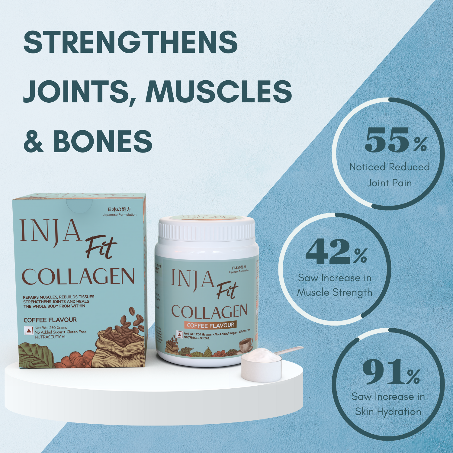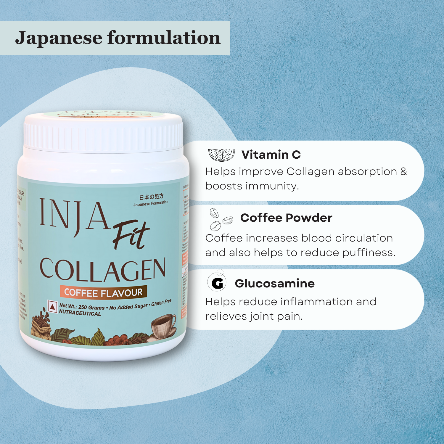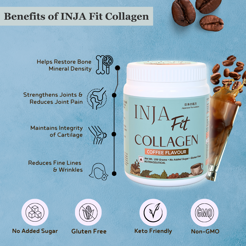 - Inja Fit Collagen Powder for Muscle, Joint & Tissue Health | Flavour Powder Coffee - 250gm Powder