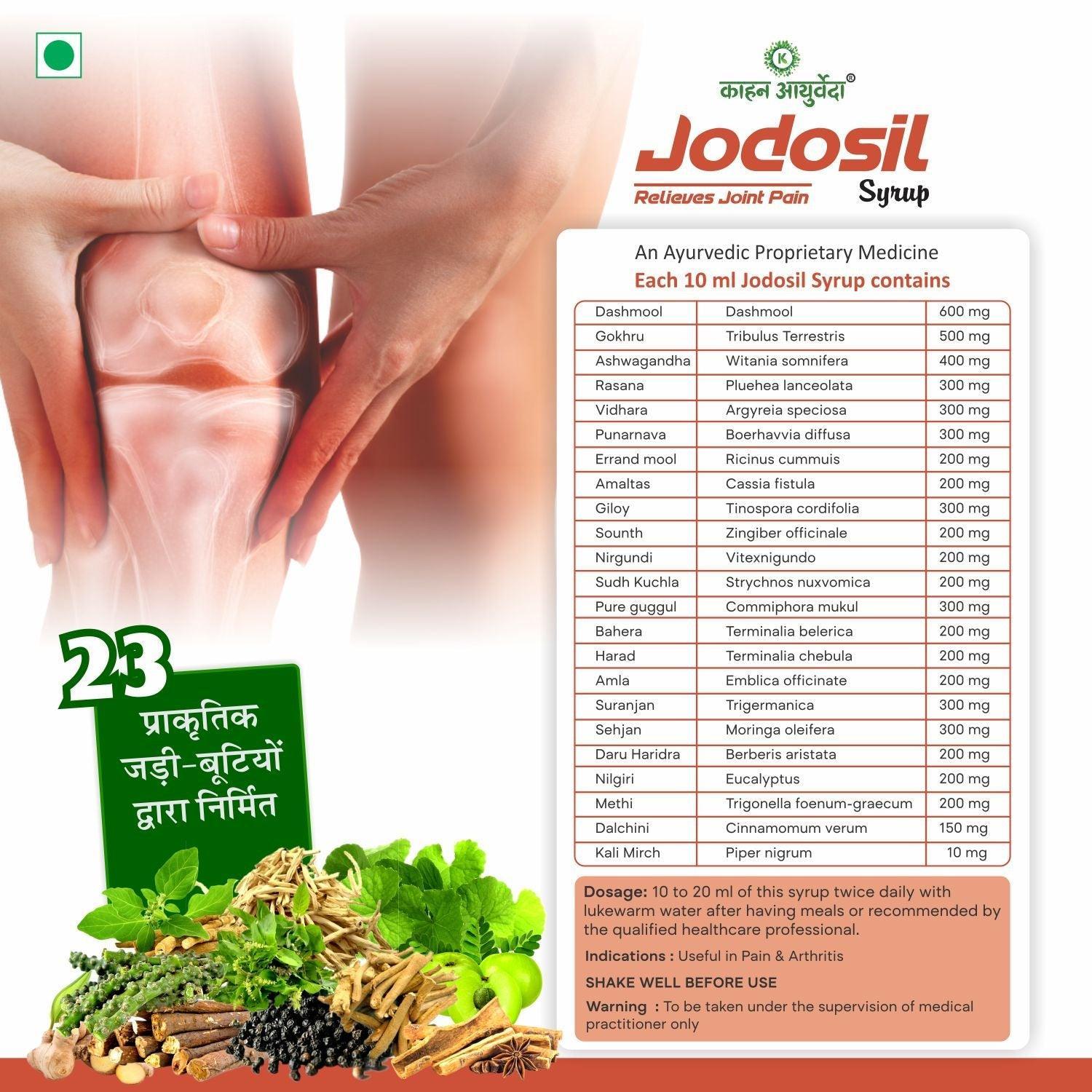 Kaahan Ayurveda Jodosil Syrup is an Ayurvedic solution carefully formulated to alleviate joint and body pain.