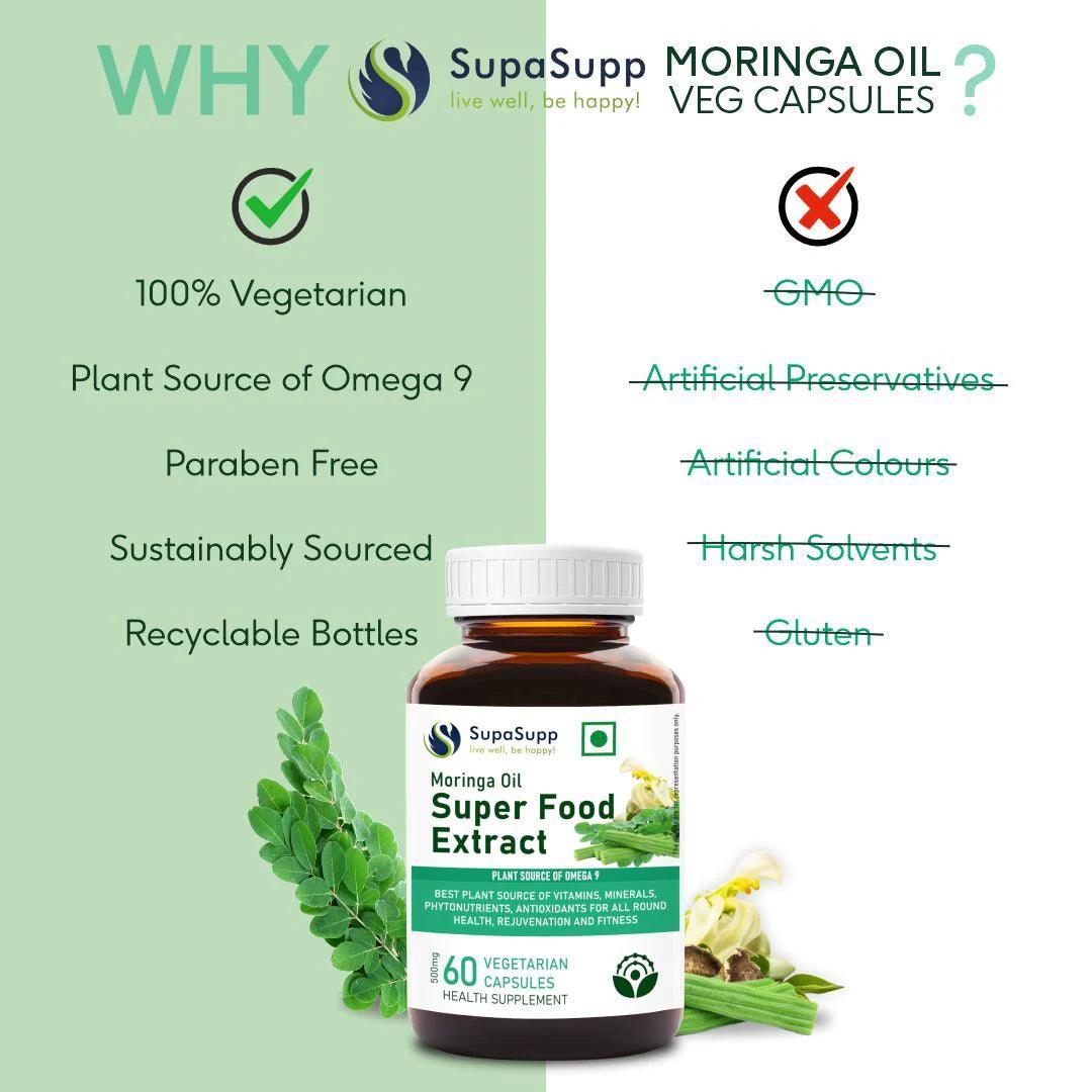 - Sri Sri Tattva SupaSupp Moringa Oil Vegetarian Capsule Super Food Extract, for Rejuvenation Fitness, - 60 Capsules