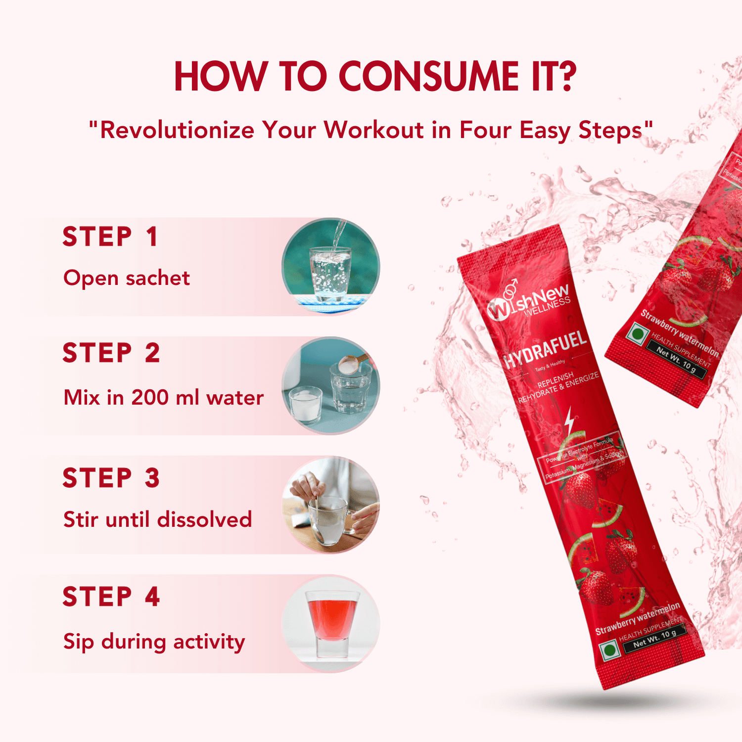 WishNew Wellness Hydrafuel Instant Energy Drink Mix Sachet Strawberry & Watermelon