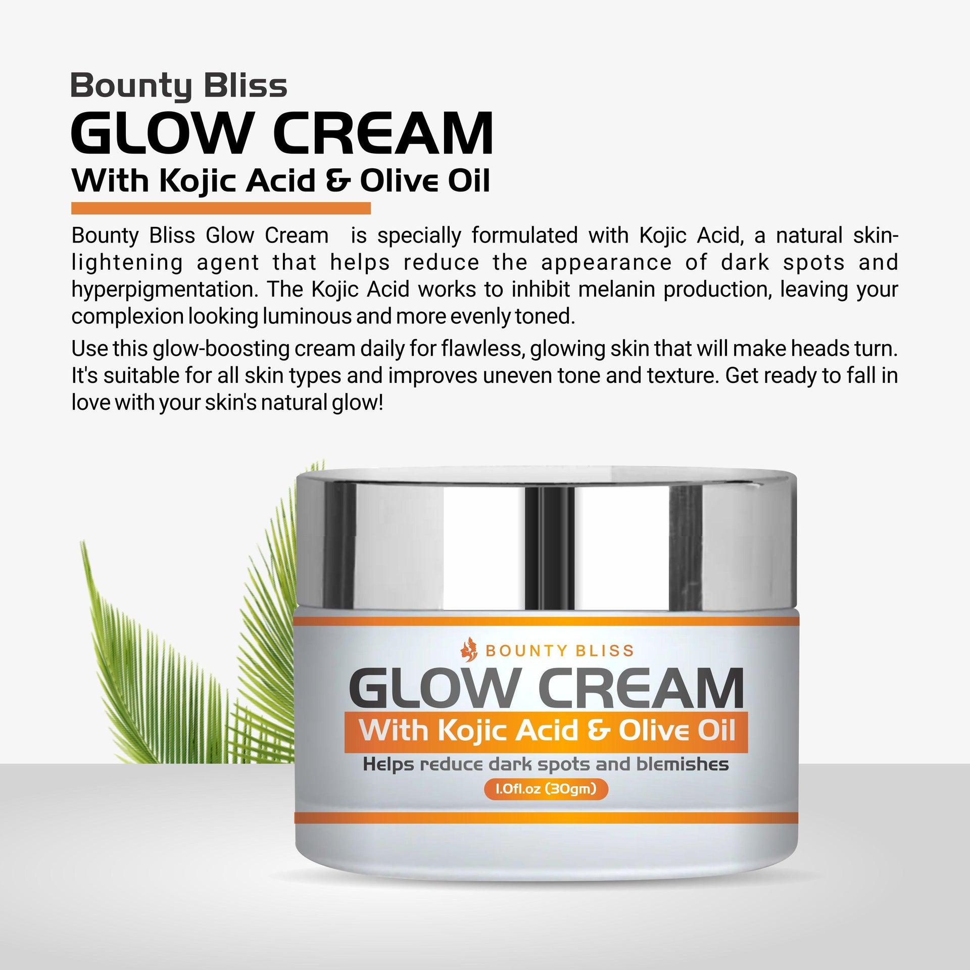 Benefits of Bounty Bliss Glow Cream With Kojic Acid & Olive Oil