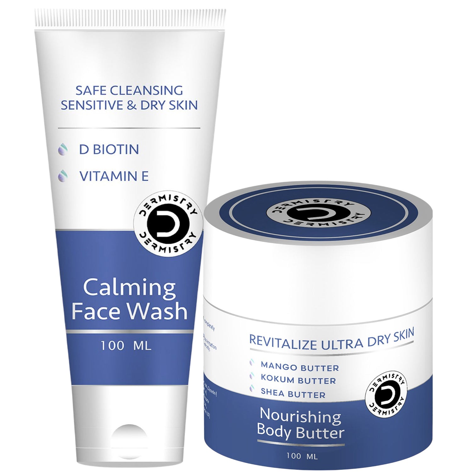 Dermistry Dry & Very Dry Skin Shea Coffee Body Butter & Gentle Mild Cleanser Soap Free Face Wash