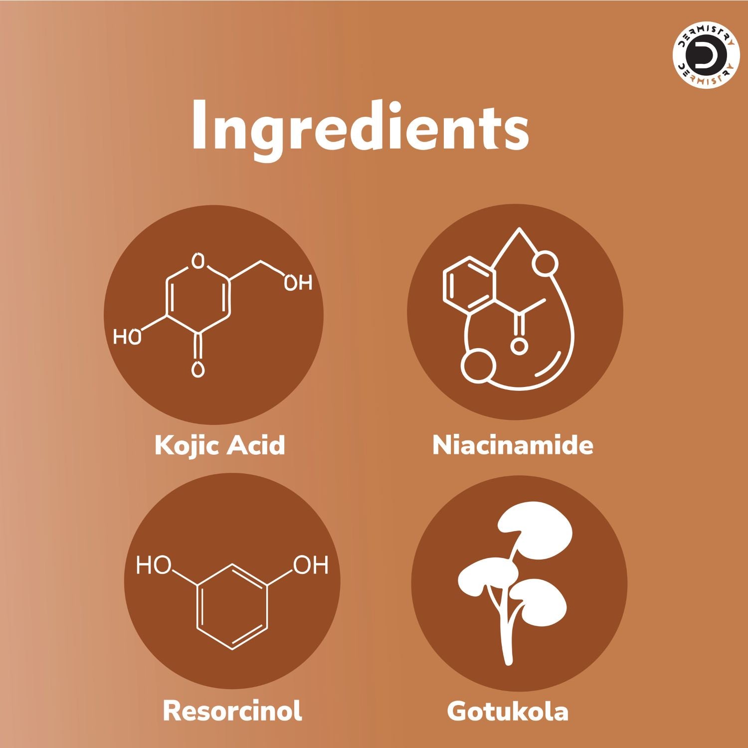 Dermistry Skin Perfecting Face Serum - Facing hyperpigmentation, dark spots and diurnal skincare struggles? Up your skincare game to reveal smooth and radiant skin with the power of kojic acid and resorcinol. Go with dermistry skin perfecting resorcinol, and kojic acid face serum. It is loaded with gotukola ext, retinol and salicylic acid efficiently helps in fading dark spots with every application. The less melanin produced by your skin, the fewer dark spots you have, thus giving an even complexion. This advanced expression stands as the ultimate result for minimizing dark spots and saturation.