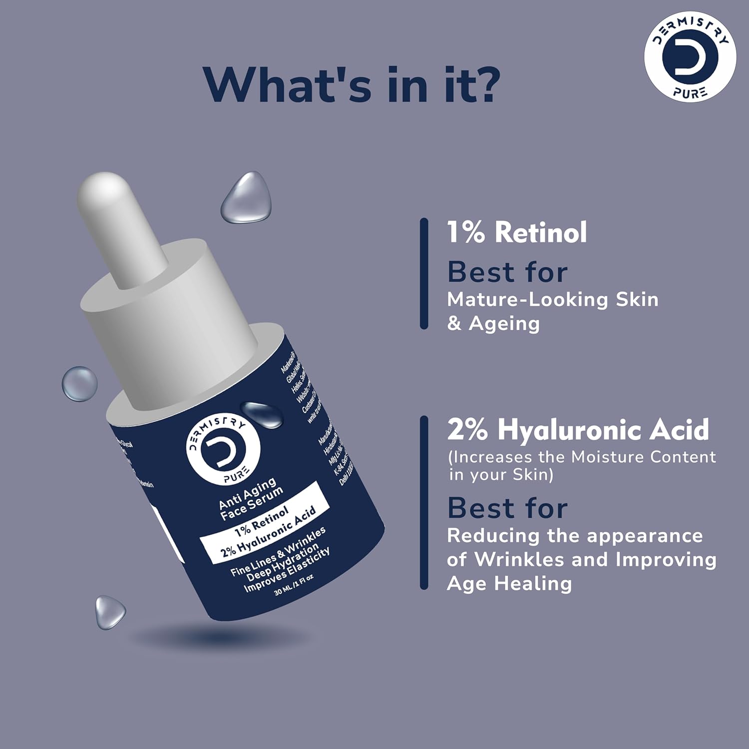 Dermistry Pure 1% Retinol 2% Hyaluronic Acid Anti Aging Face Serum