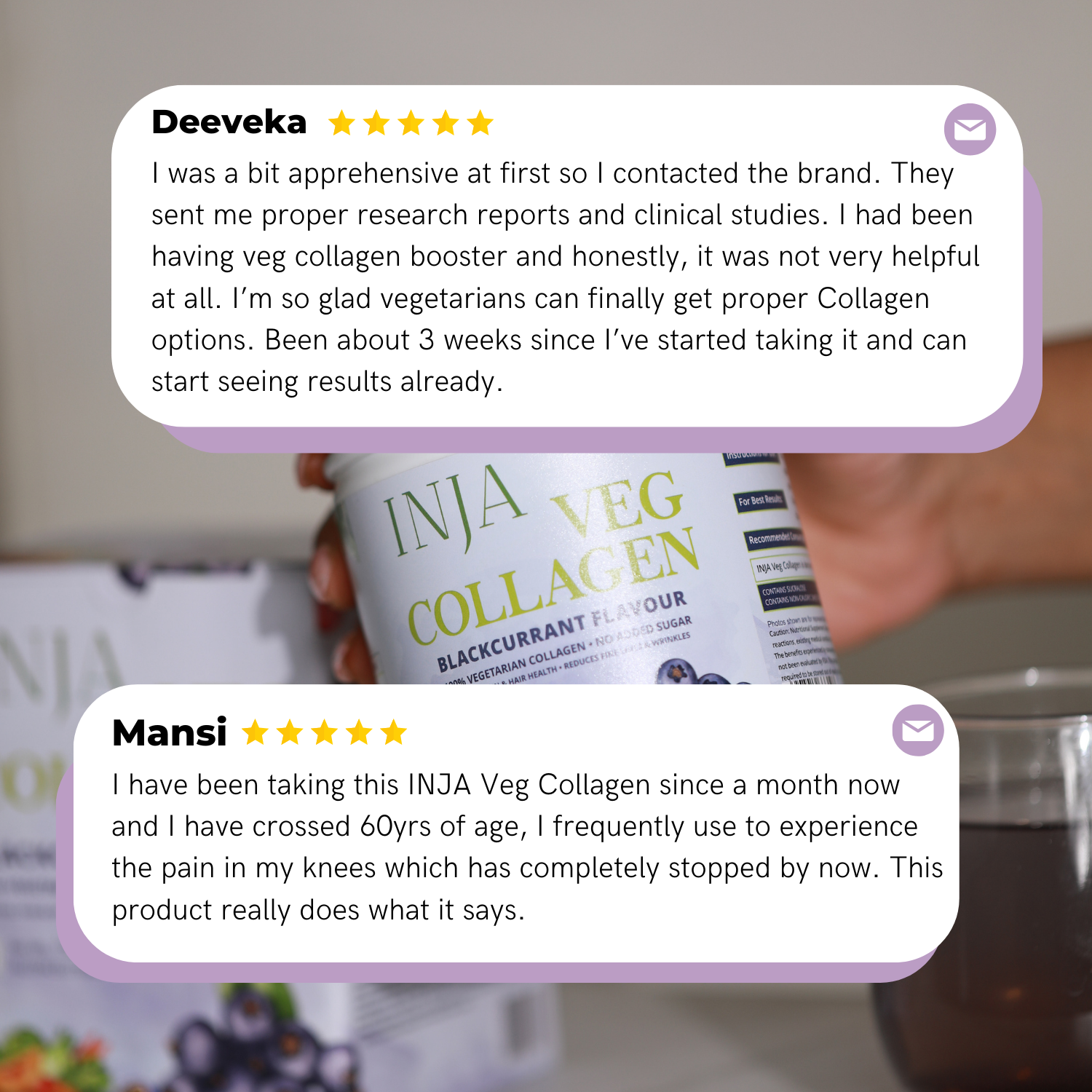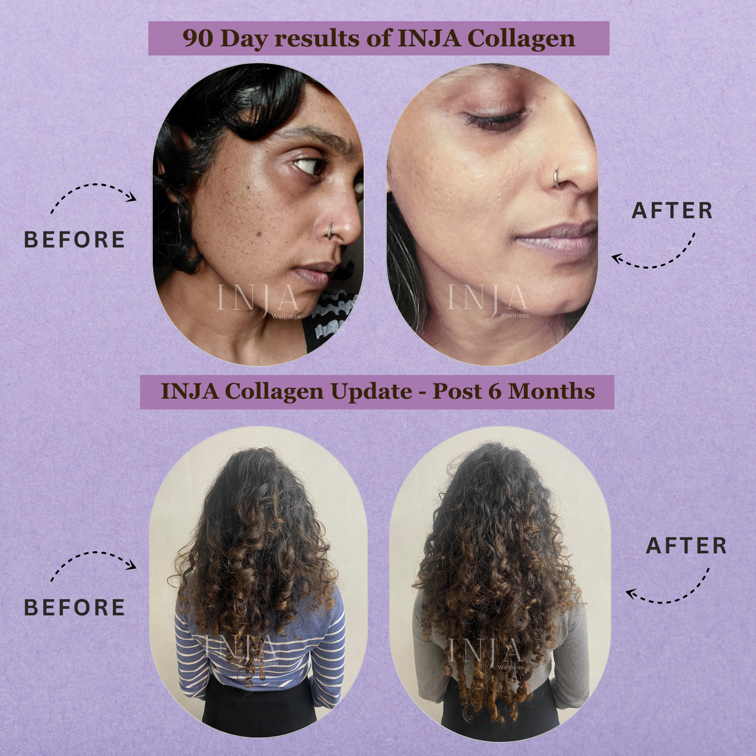 Inja Veg Collagen Powder is a vegetarian collagen peptide having an amino acid profile like animal-derived collagen. This product has revolutionised the vegetarian collagen market by being nothing like the collagen booster or builder that has 0 Collagen as an ingredient. Inja Veg Collagen has Collagen itself as an ingredient and shows results. INJA Veg Collagen comes in a 150-gram jar of unflavoured collagen. It comes with a 5-gram scoop inside. Collagen is the most abundant structural protein in the human body. 30% of our body's and 70% of our skin's protein is collagen. It is the glue holding all together: skin, bones, muscles, blood vessels, tendons, cartilage, teeth. Why do we need INJA Veg Collagen? Our body naturally produces collagen, but as we grow older, our body continuously slows down the production of collagen, which is why we start ageing faster, internally and externally. Collagen reduces our bodies due to stress, tobacco, high sugar diet and overexposure to UV rays, causing fine lines, wrinkles, hair fall and more.