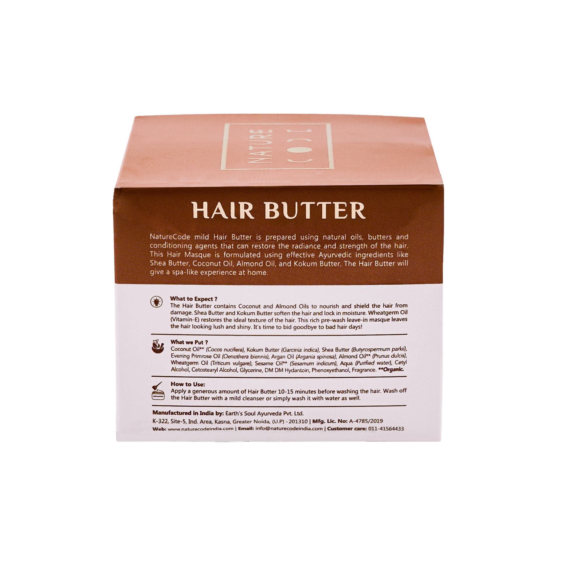 Nature Code Hair Butter is prepared using natural oils, butter, and conditioning agents that can restore the radiance and strength of the hair. This hair masque is formulated using effective ayurvedic ingredients like shea butter, coconut oil, almond oil, and kokum butter. This hair butter will give you a hair spa at home.