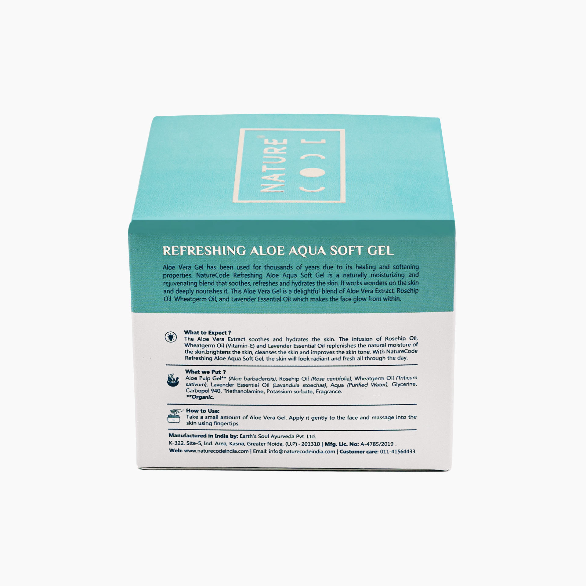 Aloe vera gel has been used for thousands of years due to its healing and softening properties. Nature code aloe aqua soft gel is a naturally moisturising and rejuvenating blend that soothes, refreshes, and hydrates the skin. It works wonders on the skin and deeply nourishes it. The pure aloe gel makes a face glow from within.