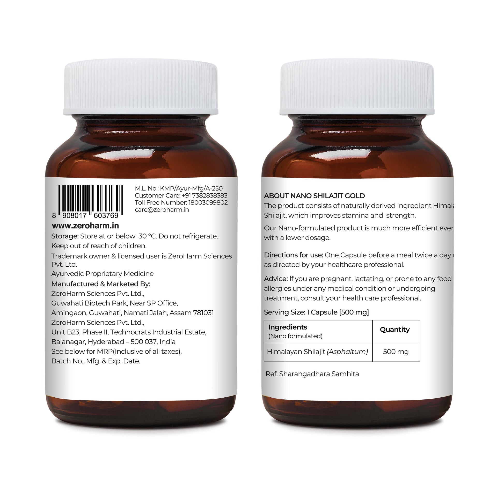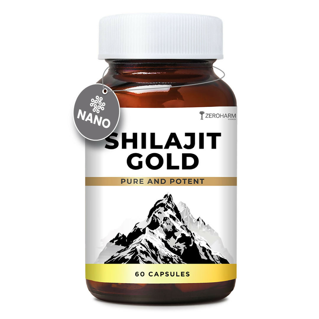 ZEROHARM Shilajit Gold Capsules - Pure Himalayan Shilajit 500 mg - Fulvic & Humic Acid - Natural Energy, Stamina Support & Muscle Growth - Backed by Nano-Technology – 60 Capsules