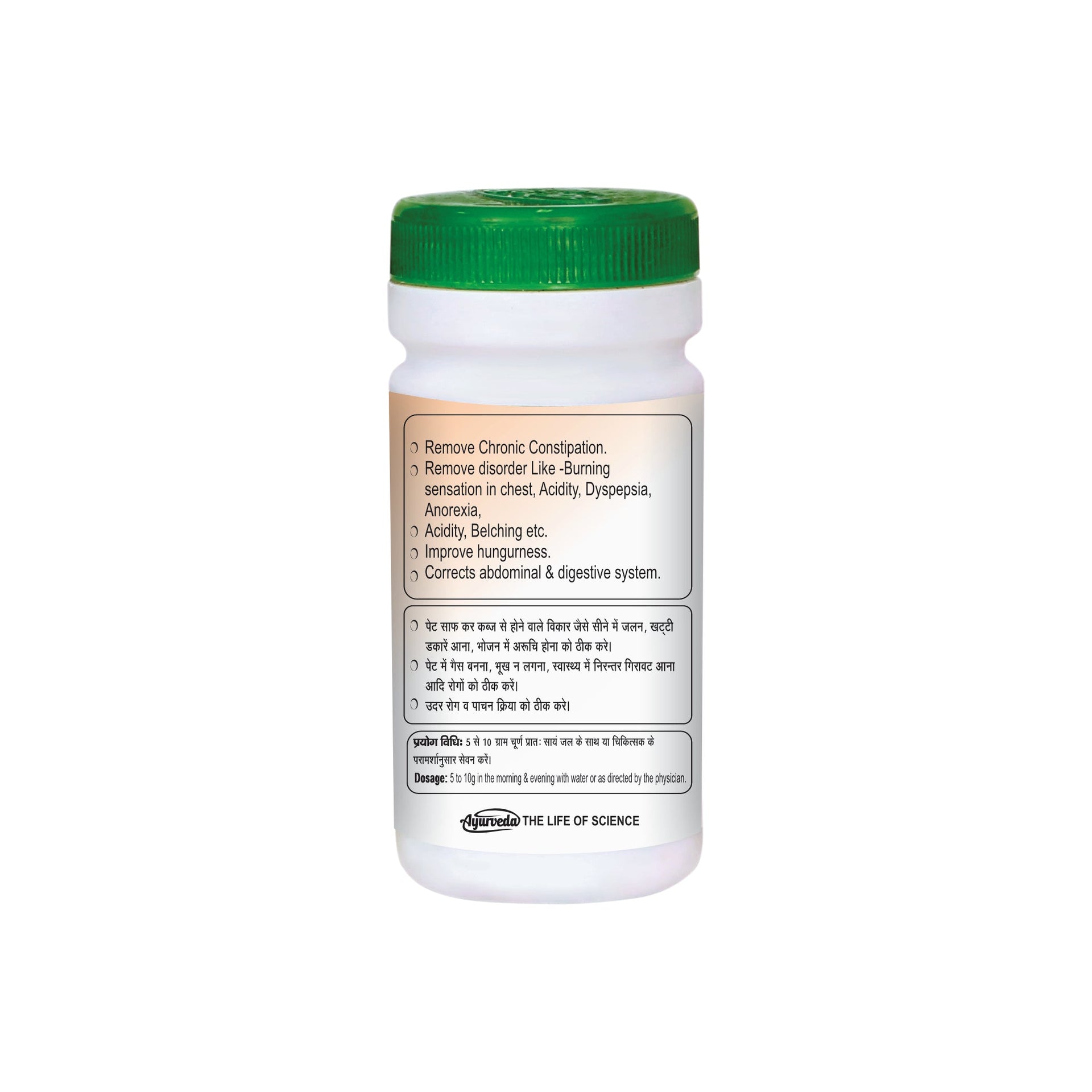 Lakshmi R. My nighttime routine now includes mixing a small amount of this churna with warm water and honey. It is a wonderful way to prepare the body for rest and cleansing. The taste is bitter, but manageable, and the benefits the next morning are undeniable.