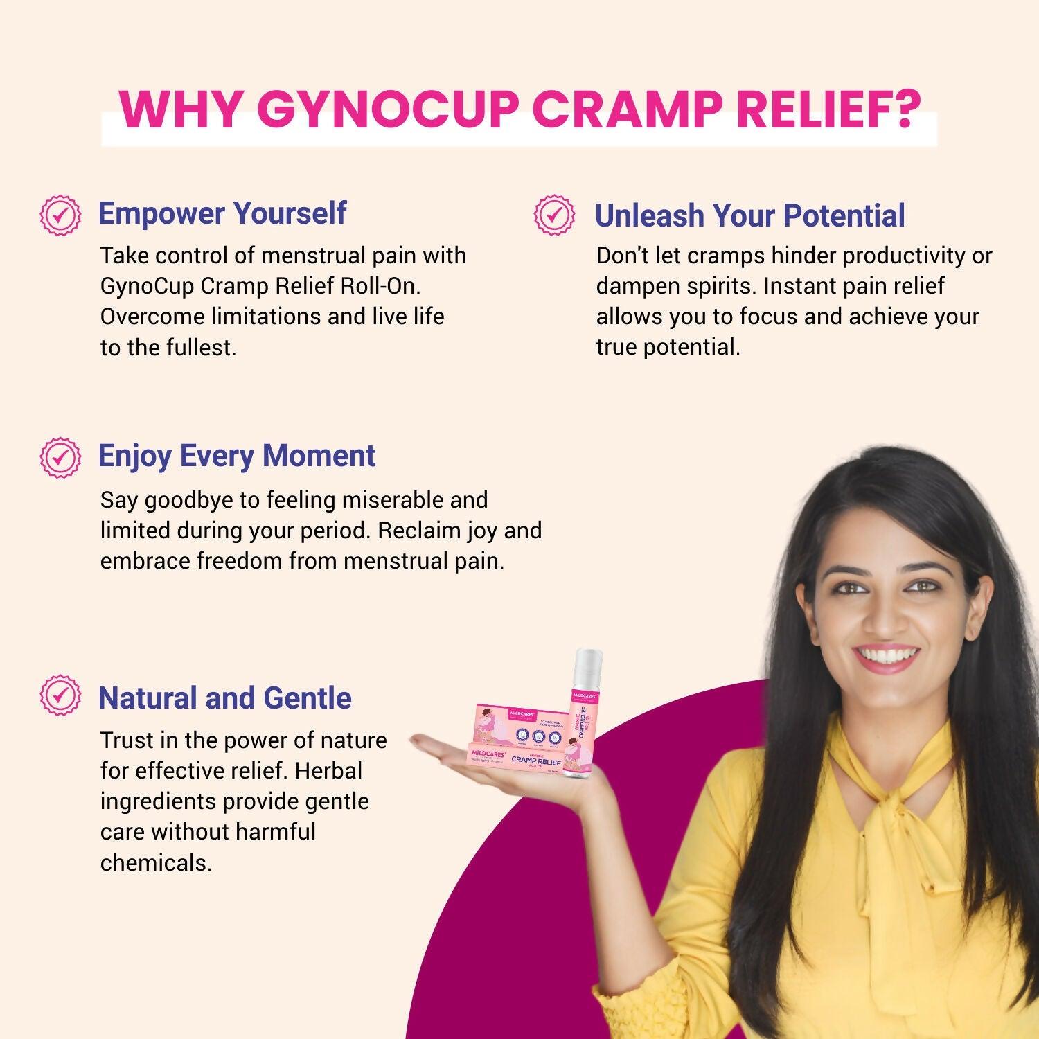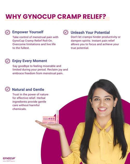 Gynocup Feminine Cramp Relief Roll can serve as an effective supplement that assists in assuaging pain and providing relief. The formula helps provide a warming effect that aids in soothing menstrual cramps. It enables you to relax and serves as an anti-inflammatory roll-on.
