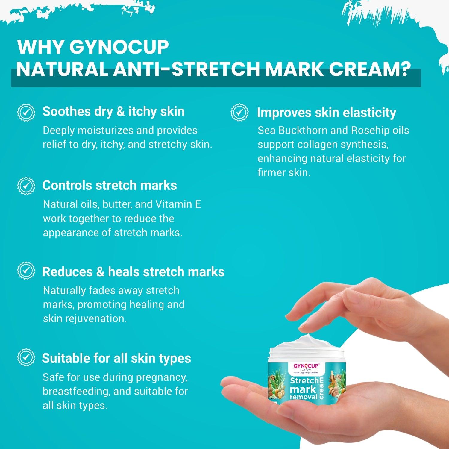 Gynocup Stretch Mark Removal Cream is formulated to help assuage the stretch marks left behind by several personal reasons. It can help lessen the starkness of the stretch mark and make it less prominent. It can help reduce the visibility of any stretch mark.