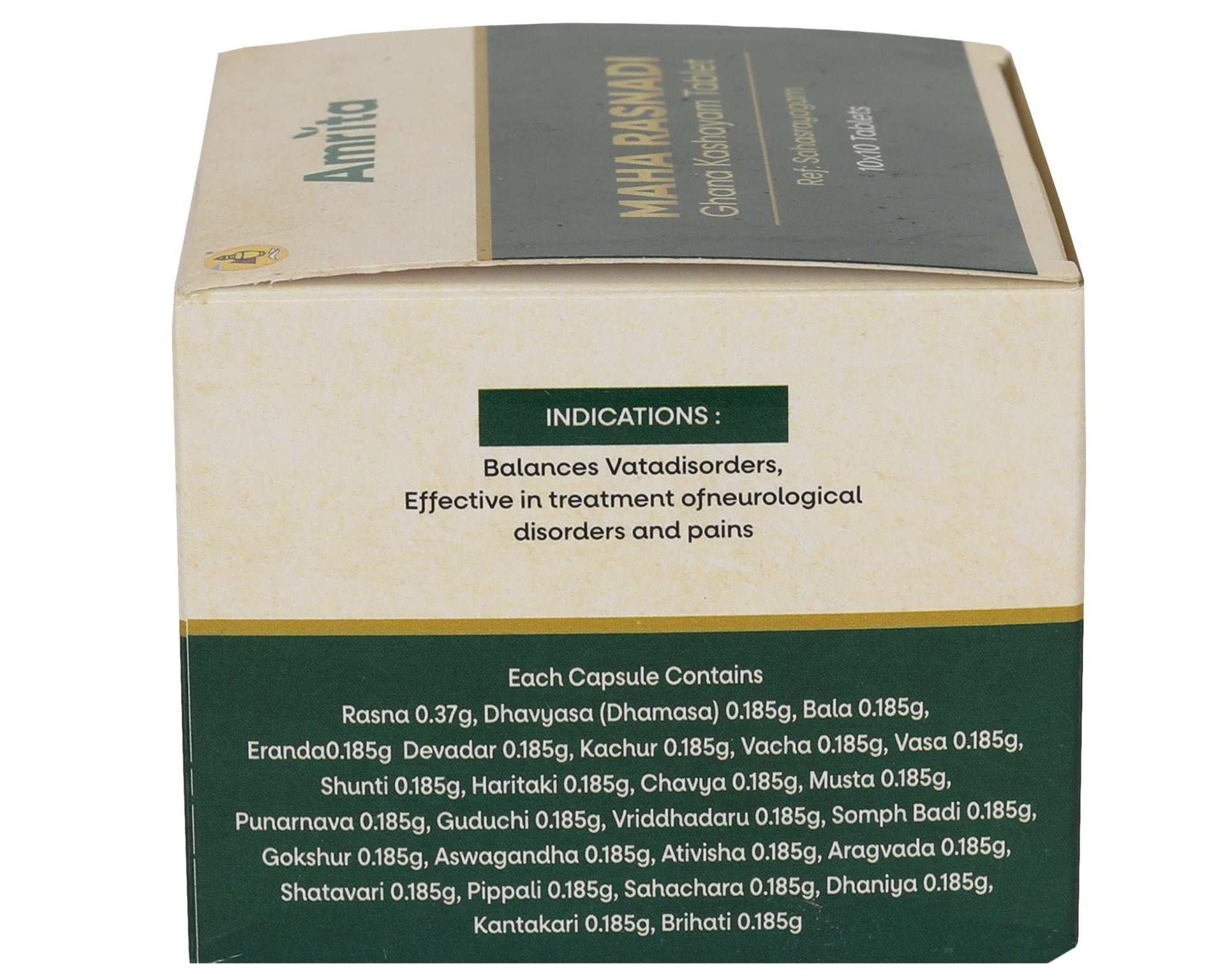 Amrita Maha Rasnadi Ghana Kashayam Tablet helps to balance vata disorders like kampavata. It is also helpful to promote the wellness of the reproductive system of both men and women. It also helps in eczema and dermatitis