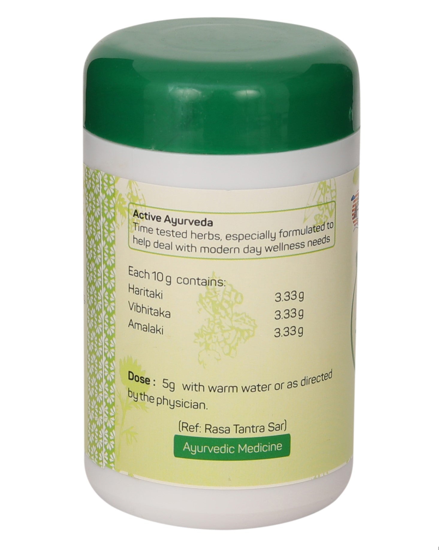 Amrita Triphala Churna (100gm Each) is a combination of ayurvedic herbs like haritaki, bibhitaka, and amalaki. It helps provide relief from constipation and irritable bowel syndrome