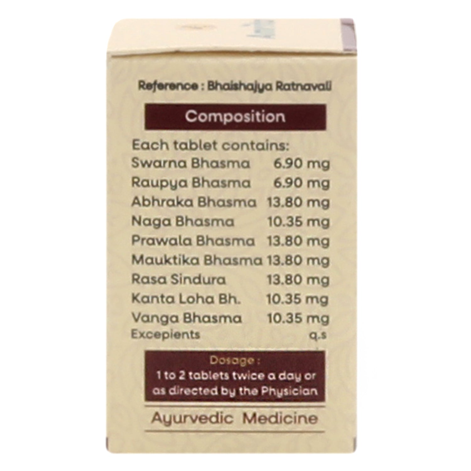 Amrita Vasant Kusumakar Ras God Tablet is fortified with the goodness of pure gold and primarily used for the management of diabetes mellitus. Due to its Rasayana properties, it helps manage weakness and controls blood sugar levels. It is also a good rejuvenator that restores strength, and vitality and helps in improving immunity. In addition, it is recommendable for men’s problems, urinary disorders, nervous disorders, and geriatric issues.