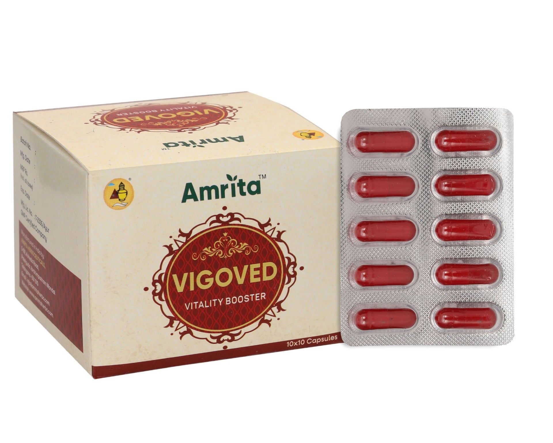 Amrita Vigoved Capsule is a revitalizer. It boosts energy and helps build stamina and endurance. It also helps enhance mobility and athletic performance