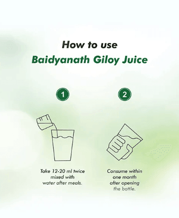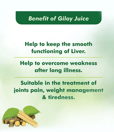 Baidyanath (Jhansi) Giloy Juice has giloy which is the stem of immortality is recommended in Ayurveda as an immunity booster, it helps to treat chronic and recurrent infections and fever. It boosts the immune system and the body's resistance against infections by increasing bacterial clearance and phagocytic activity by neutrophils.Key Ingredients: