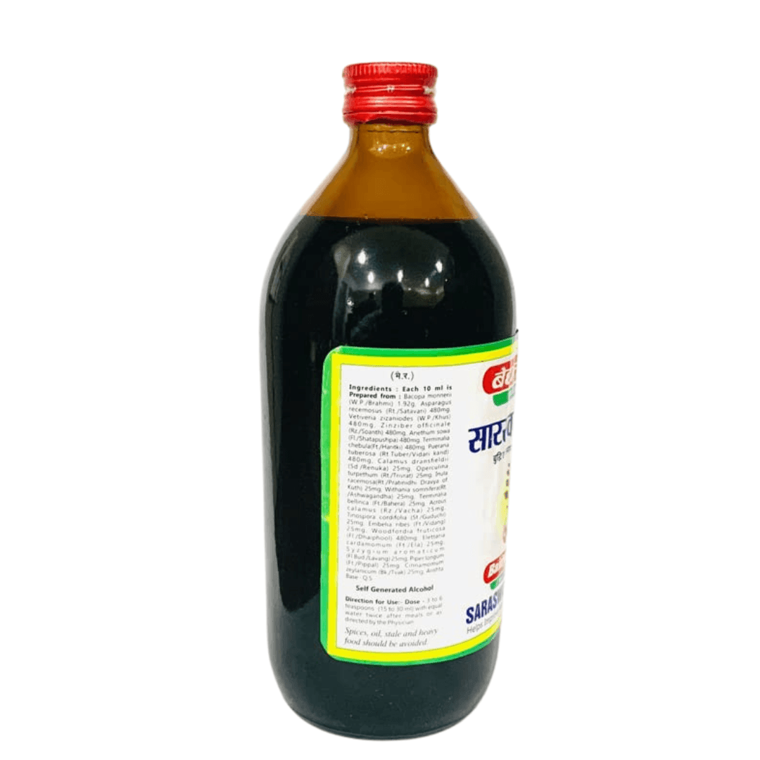 Baidyanath (Jhansi) Saraswatarishta helps to calm the nervous system and benefits the mind by giving it strength. It may aid in increasing focus, enhancing cognitive abilities, and easing conditions like vertigo and anorexia. It contains Brahmi, which may also aid in lowering anxiety and stress levels and enhancing normal brain processes.