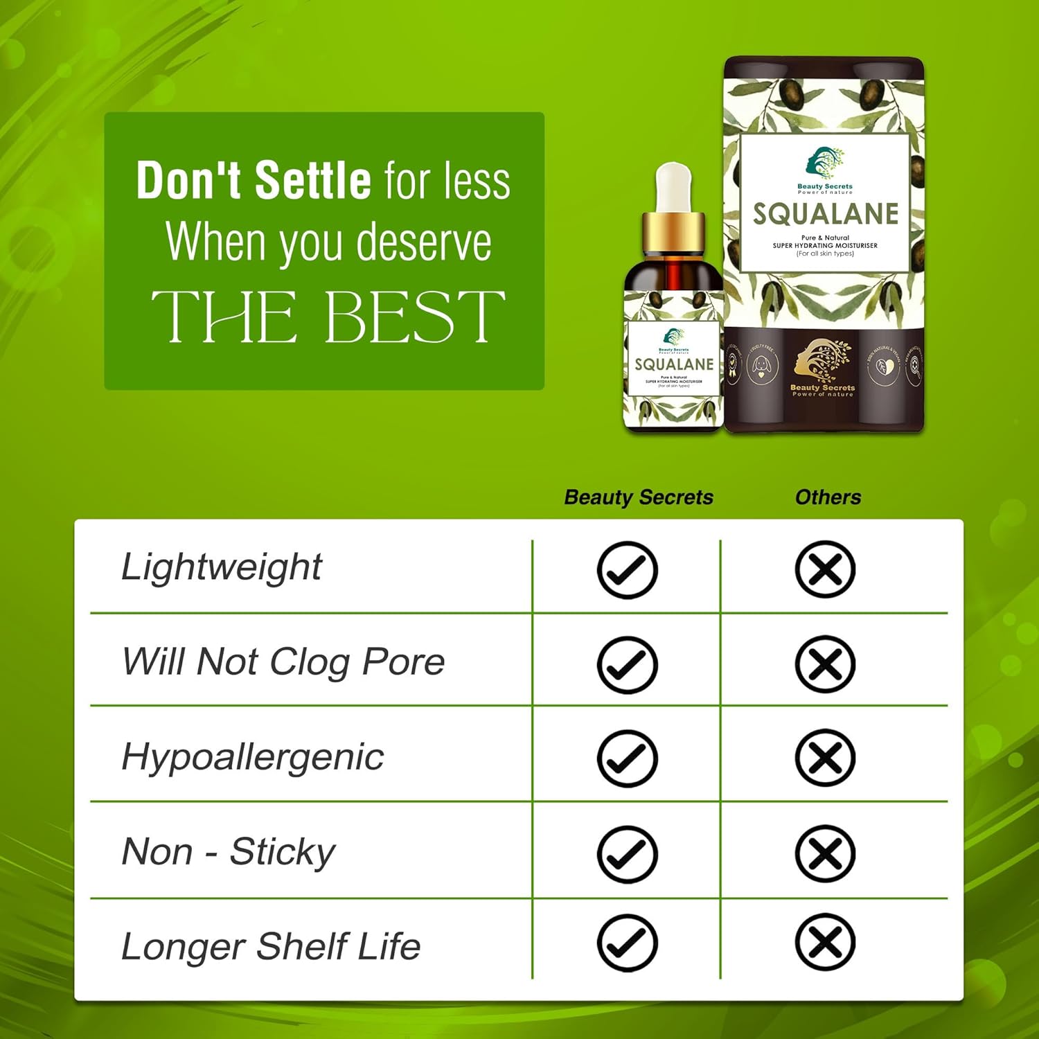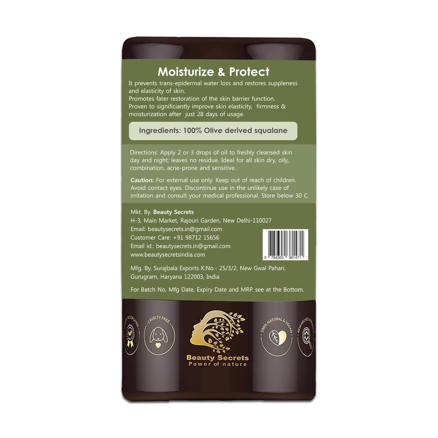 Beauty Secrets Certified Organic Squalane Oil For Face | Lightweight Anti Aging Face Oil for Glowing Skin | Hydrating Face Moisturizer for Women & Men for All Skin Types-30ml