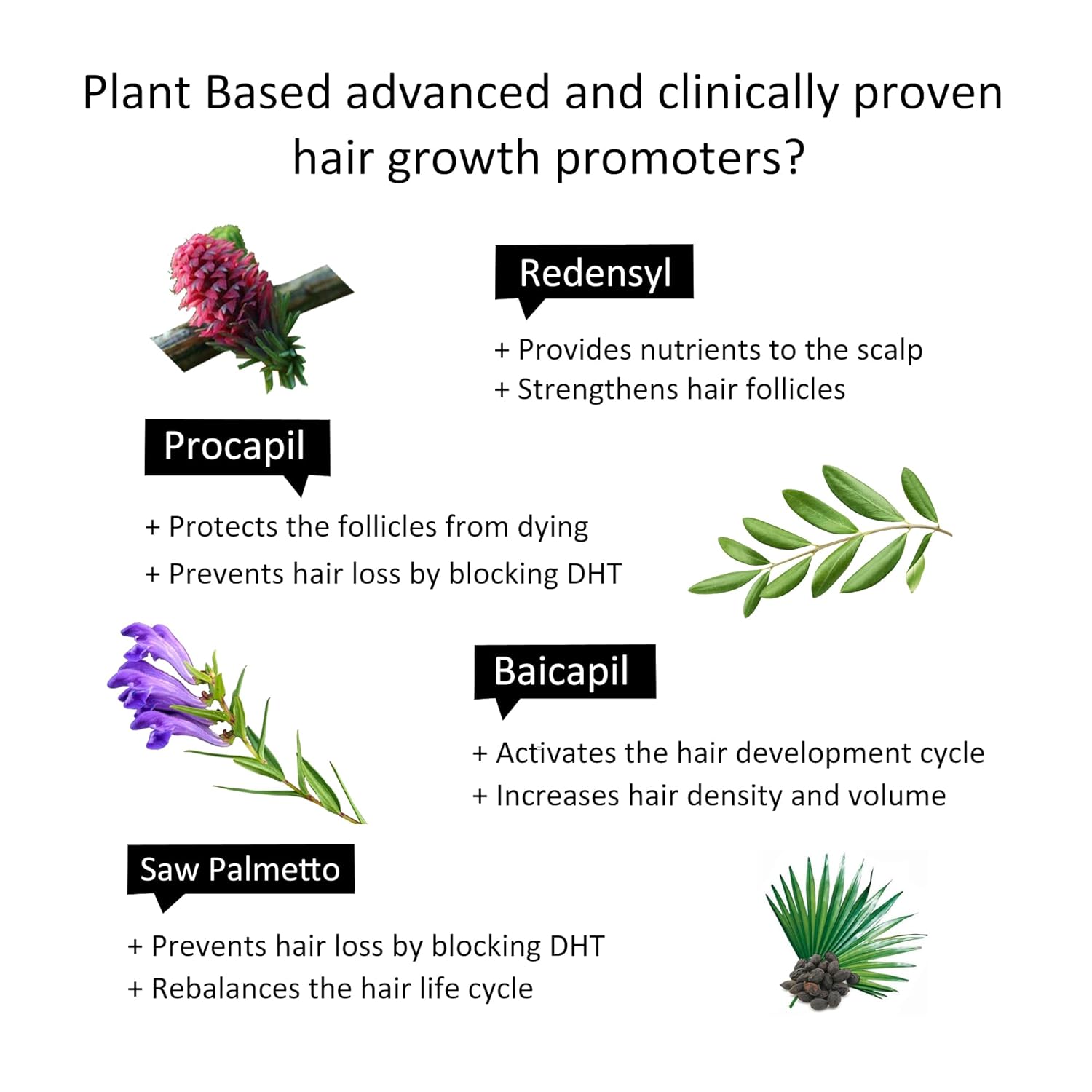 Redensyl®, Procapil™, Baicapil™, Agave Tequilana (Blue Agave) Leaf Extract, Saw palmetto extract, Sodium hyaluronate, Arnica Montana Flower Extract, Avena Sativa Bran Extract (Oat Beta Glucan), Biotin, Mannitol, Panthenol, Propolis, Rice Amino Acids, Soluble Collagen (Marine Derived), Squalane (Derived From Sugar Cane), Hydroxypropyl Methylcellulose, Cellulose, Potassium Sorbate, Tocopheryl Acetate (Vitamin E), Phenoxyethanol, Sodium Benzoate