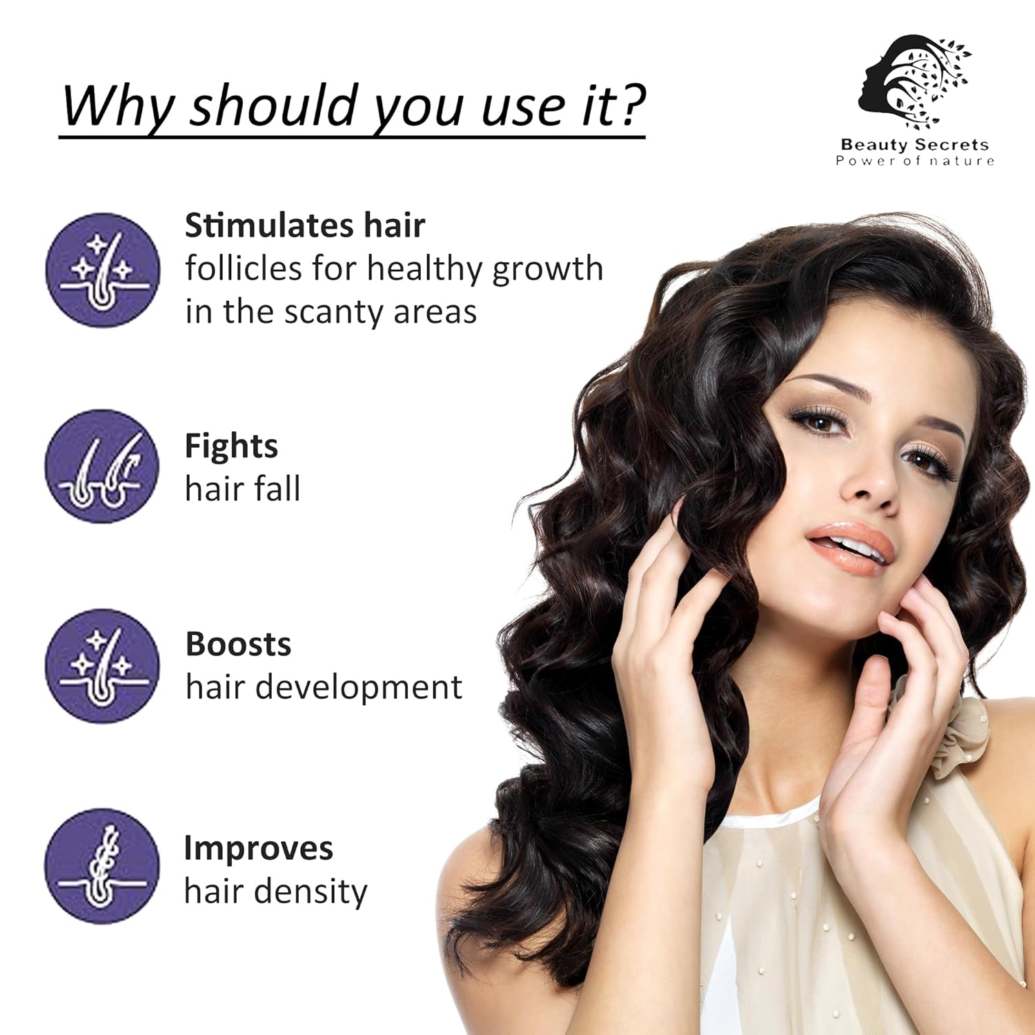 Beauty Secrets Saw Palmetto Serum is a plant-based, non-sticky serum designed to nourish the scalp and hair roots, promoting healthy hair growth and combating hair fall. It utilises ingredients to revitalise hair stem cells and improve hair density and volume, making it effective for addressing issues like receding hairlines and thinning hair.