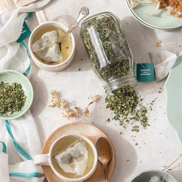 Butterfly Ayurveda Moringa Tea - Made with 100% dried moringa leaves, our soothing Moringa leaves infusion tea helps detox the body, improves digestion, and balances Vata & Kapha Doshas. Subtle in flavor, Moringa leaf infusion tea makes for a power-packed cup to uplift your well-being.