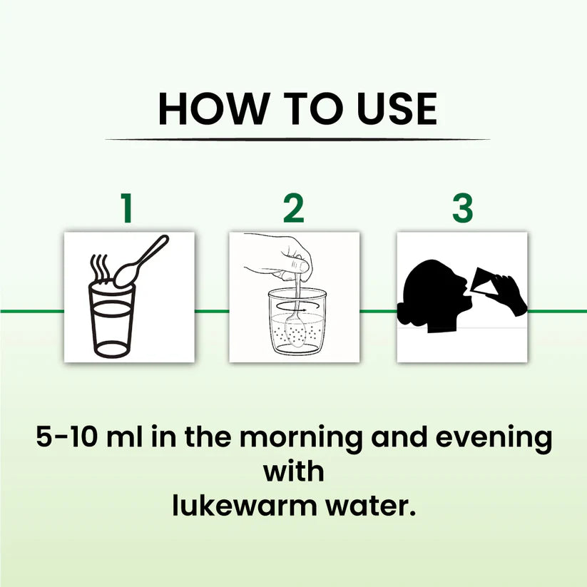 Take is just a 10ml cup before breakfast or as prescribed by the physician.