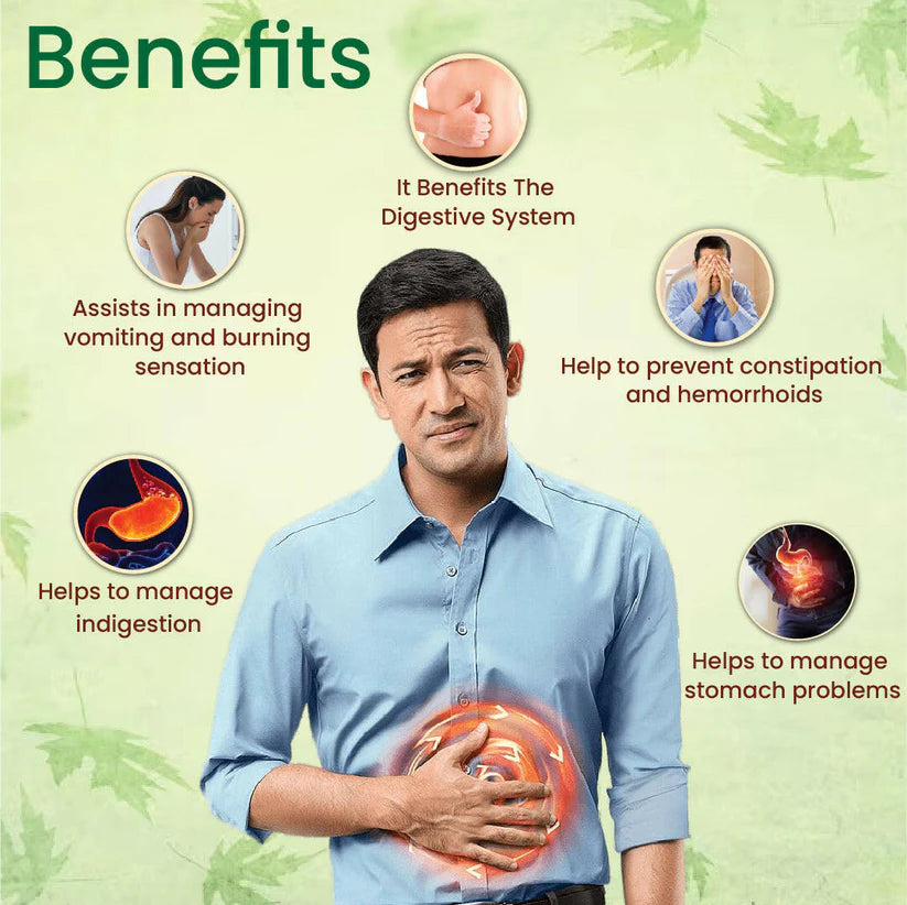 - Regular consumption helps manage vomiting and burning sensation