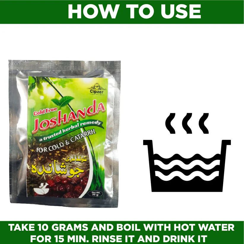 - Boil one teaspoon (approx. 5g) of Joshanda in a cup of water or milk.