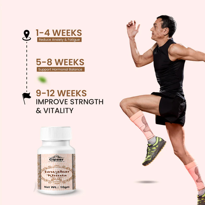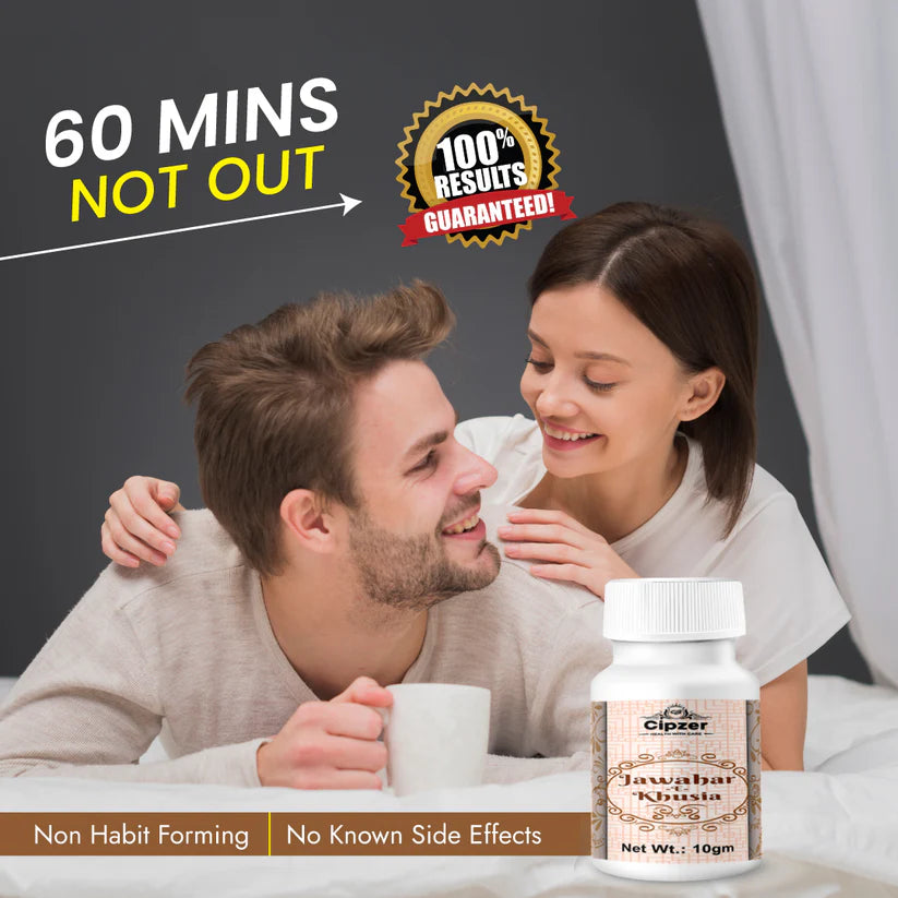 Cipzer Jawahar-E-Khusia Powder is a 100% ayurvedic product with zero side effects. It can improve general health. It can help manage stress and anxiety and can help enhance vigour and vitality.