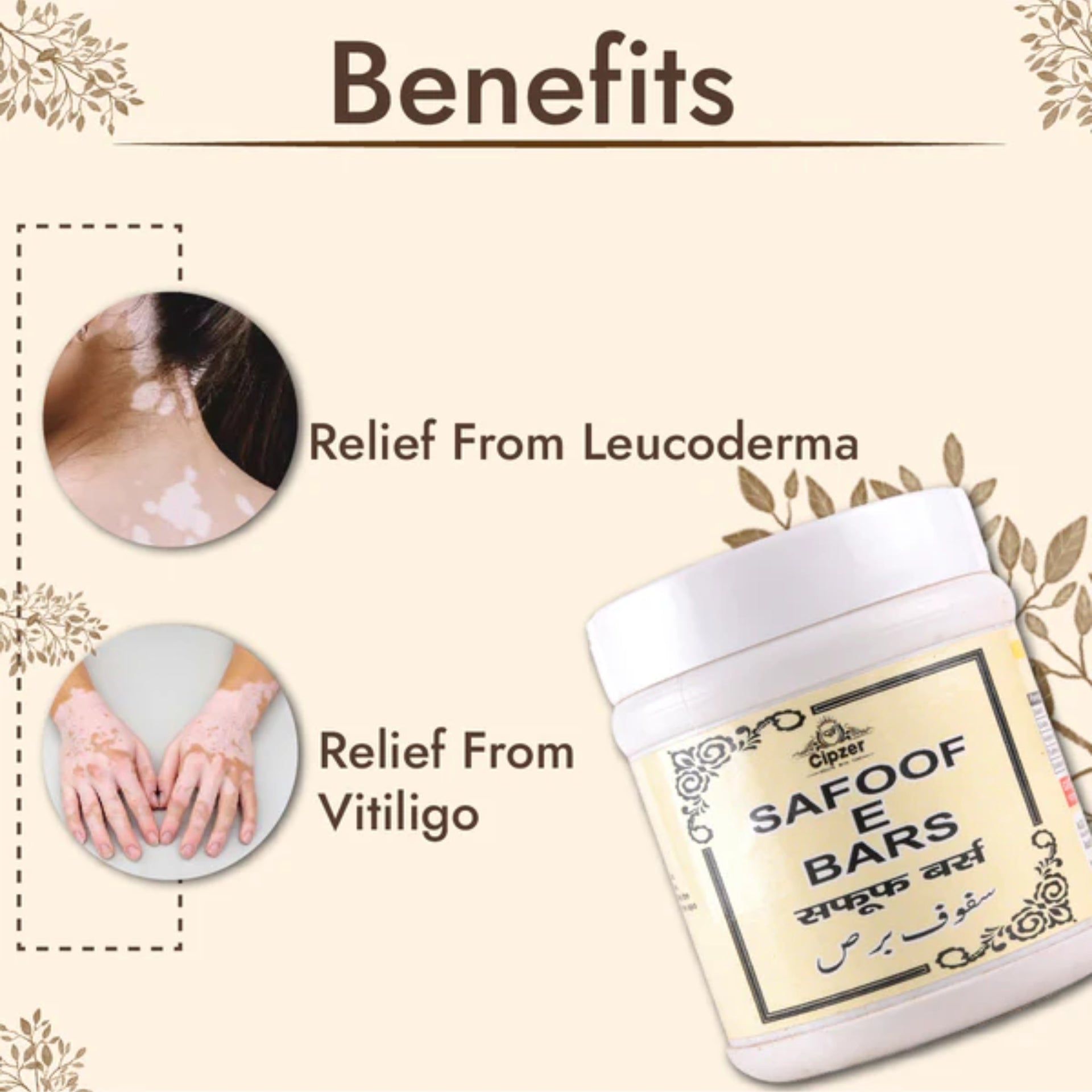 Cipzer Safoof-E-Bars Powder is an Unani formulation consisting of purely natural ingredients. It is an effective and efficacious remedy for skin disorders such as white pink or other kinds of leucoderma patches. It helps to improve blood circulation in the affected white spots area and brings the skin originality back to its real appearance.