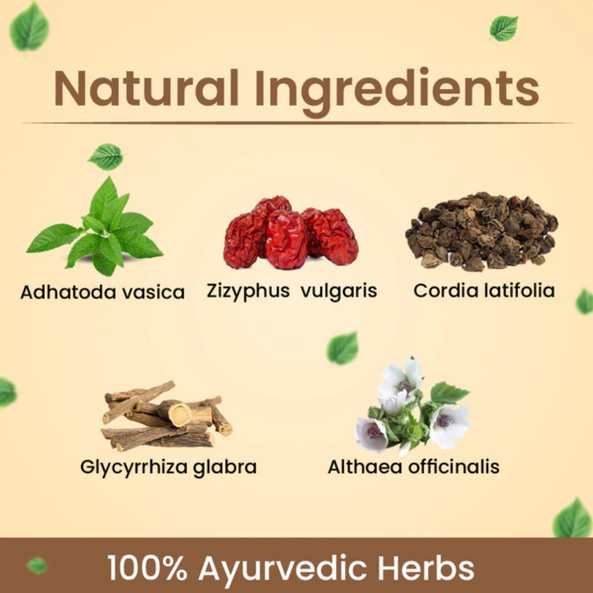 - An ayurvedic cough syrup that is helpful in soothing sore throat, cough, and common cold