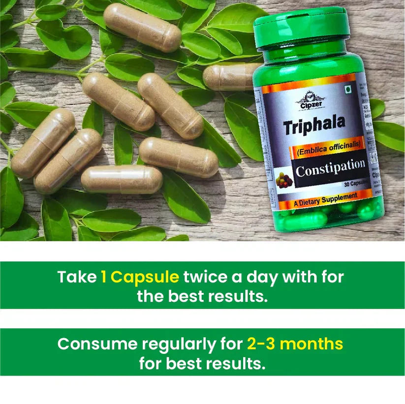Cipzer Triphala 60 Capsules work as a natural colon cleanser, helping relieve constipation, acidity, gas, and bloating. It strengthens the digestive system, improves metabolism, and ensures smooth nutrient absorption. Beyond digestion, Triphala is known to boost energy, improve vision, purify the blood, rejuvenate tissues, and provide anti-aging benefits.