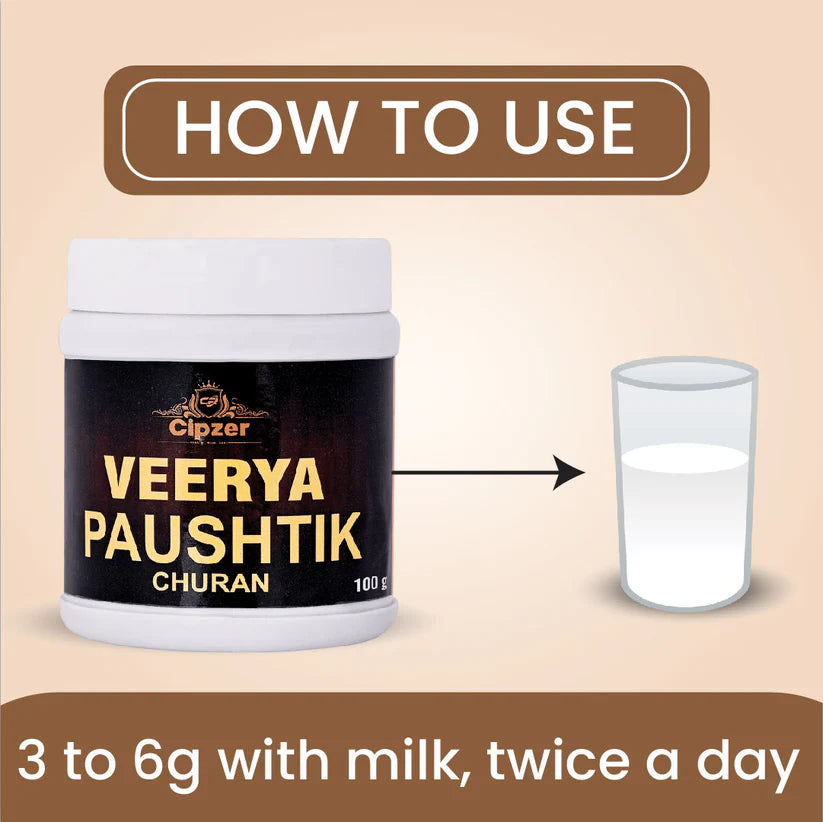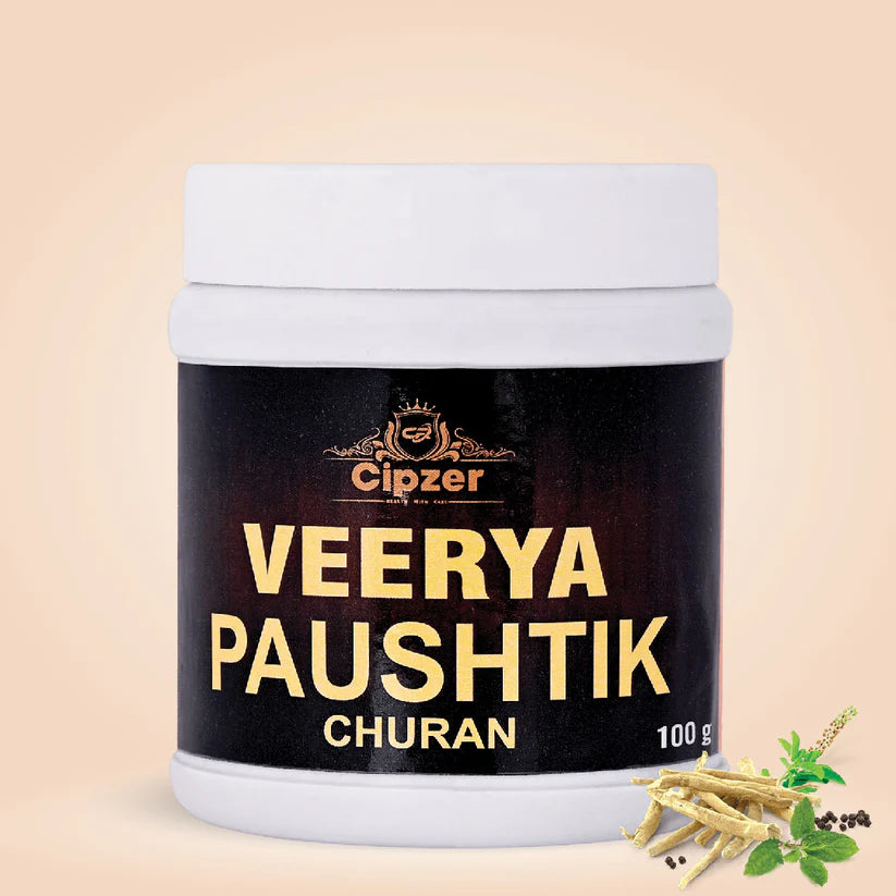 Cipzer Veerya Paushtik Churan is a culmination of natural ingredients that revitalises your health. It helps to energise and rejuvenate the body by supporting muscle strength and also gives local tissues the strength it needs. It also helps to improve physical strength, reduces weakness, provides good energy for daily life, also helps to boost sexual energy.