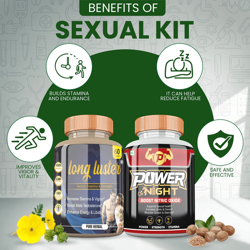 Sartaj This combo of Long Luster and Power of Night Capsules works wonders! It has boosted my stamina and helped me feel more active throughout the day. The ingredients are natural and safe, making it a trustworthy solution for men’s health.
