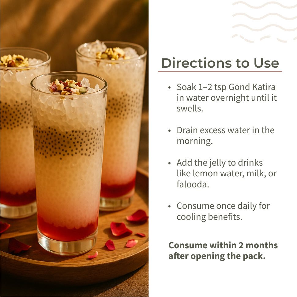 Beat the heat naturally with Ecotyl’s Gond Katira - a plant-based gum, traditionally used in Ayurvedic cooling drinks and desserts. Once soaked, it transforms into a soft, jelly-like texture, making it a beloved summer staple across Indian households.