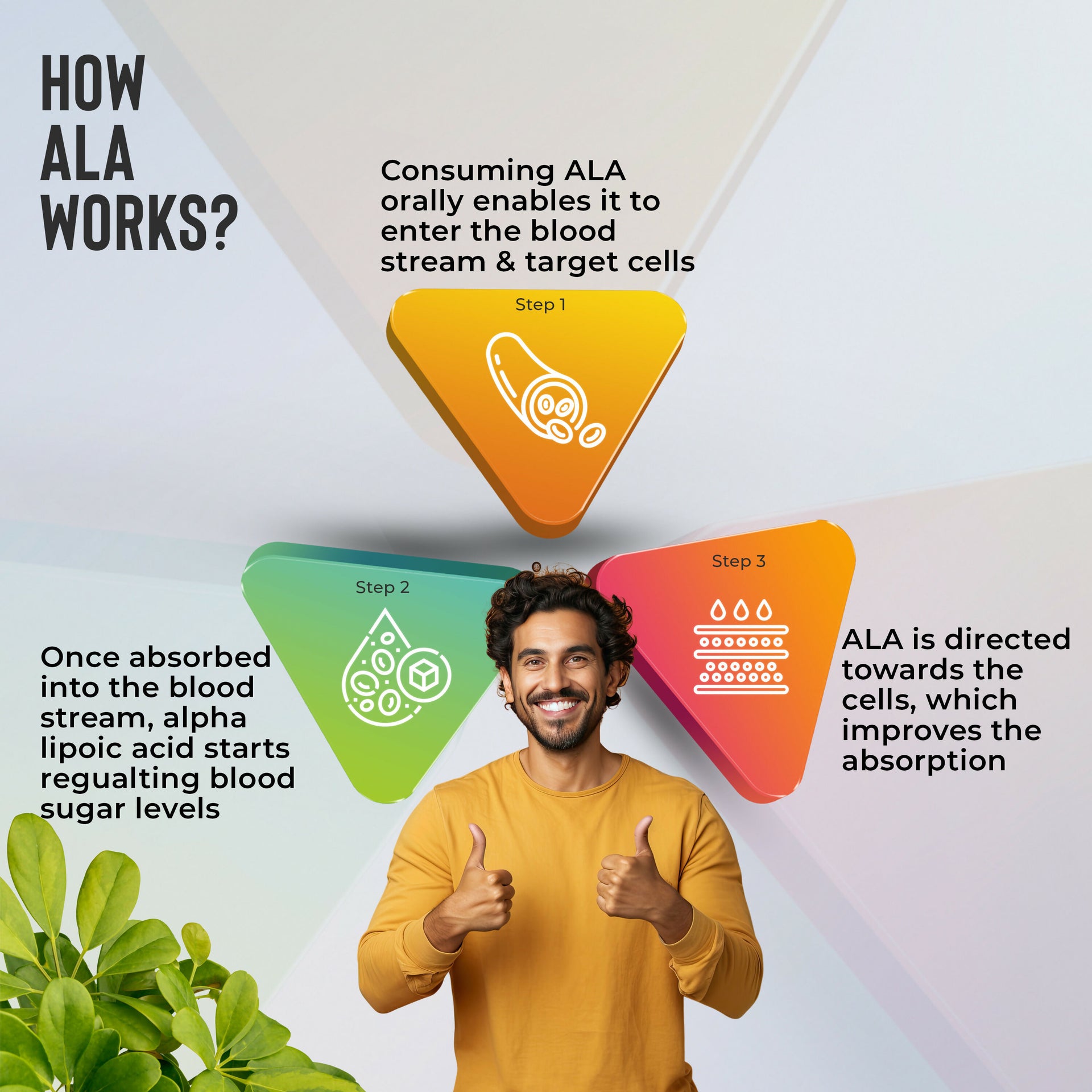 Supports Brain & Nervous System: ALA maintains a healthy circulation in the body that supports brain and nervous function. This supplement is also known to aid in better memory and focus and contribute to healthy ageing