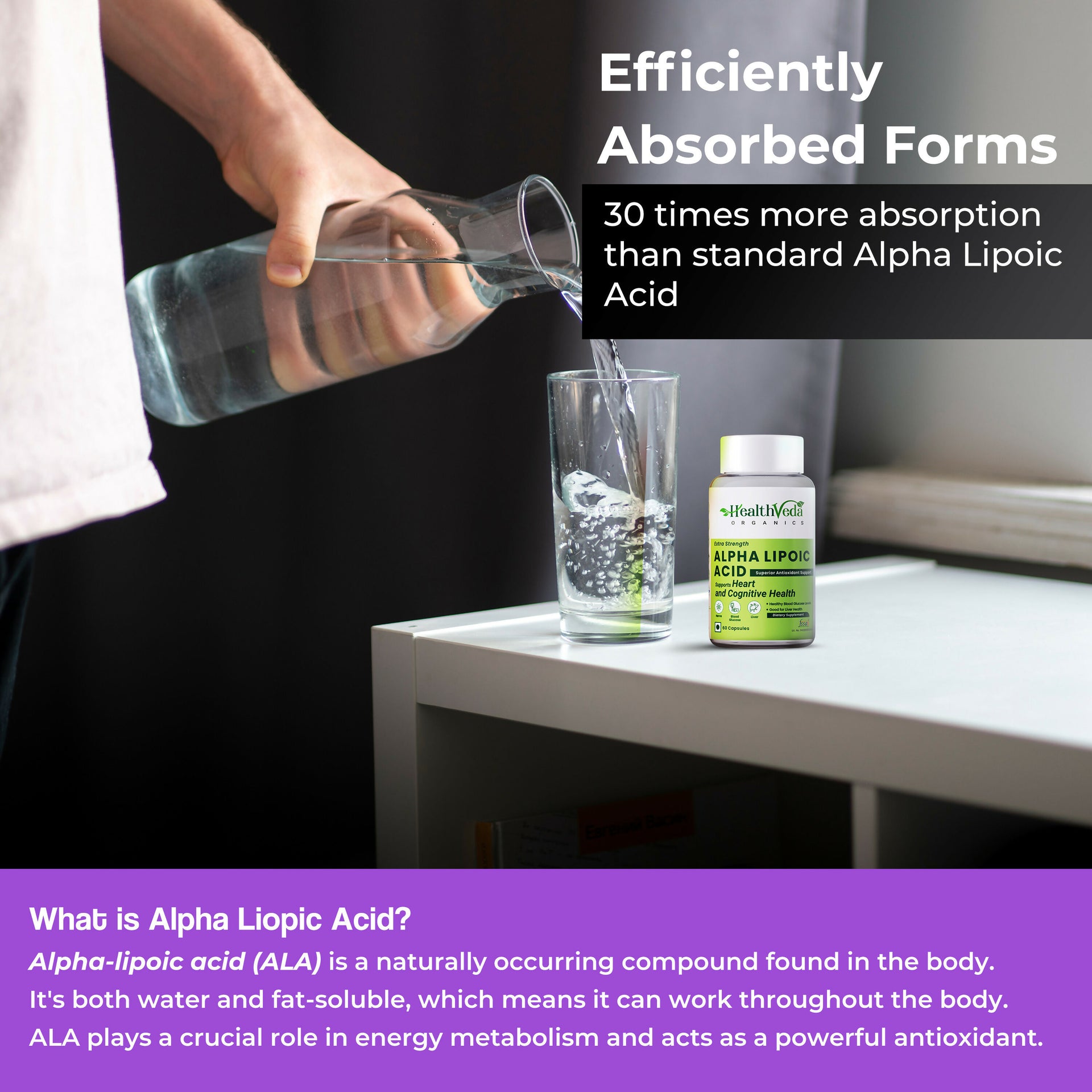 Boosts Energy Levels: Health Veda Organics Alpha Lipoic Acid is an important component in the energy production process in the cells. It helps produce energy for normal bodily functions by improving glucose utilization